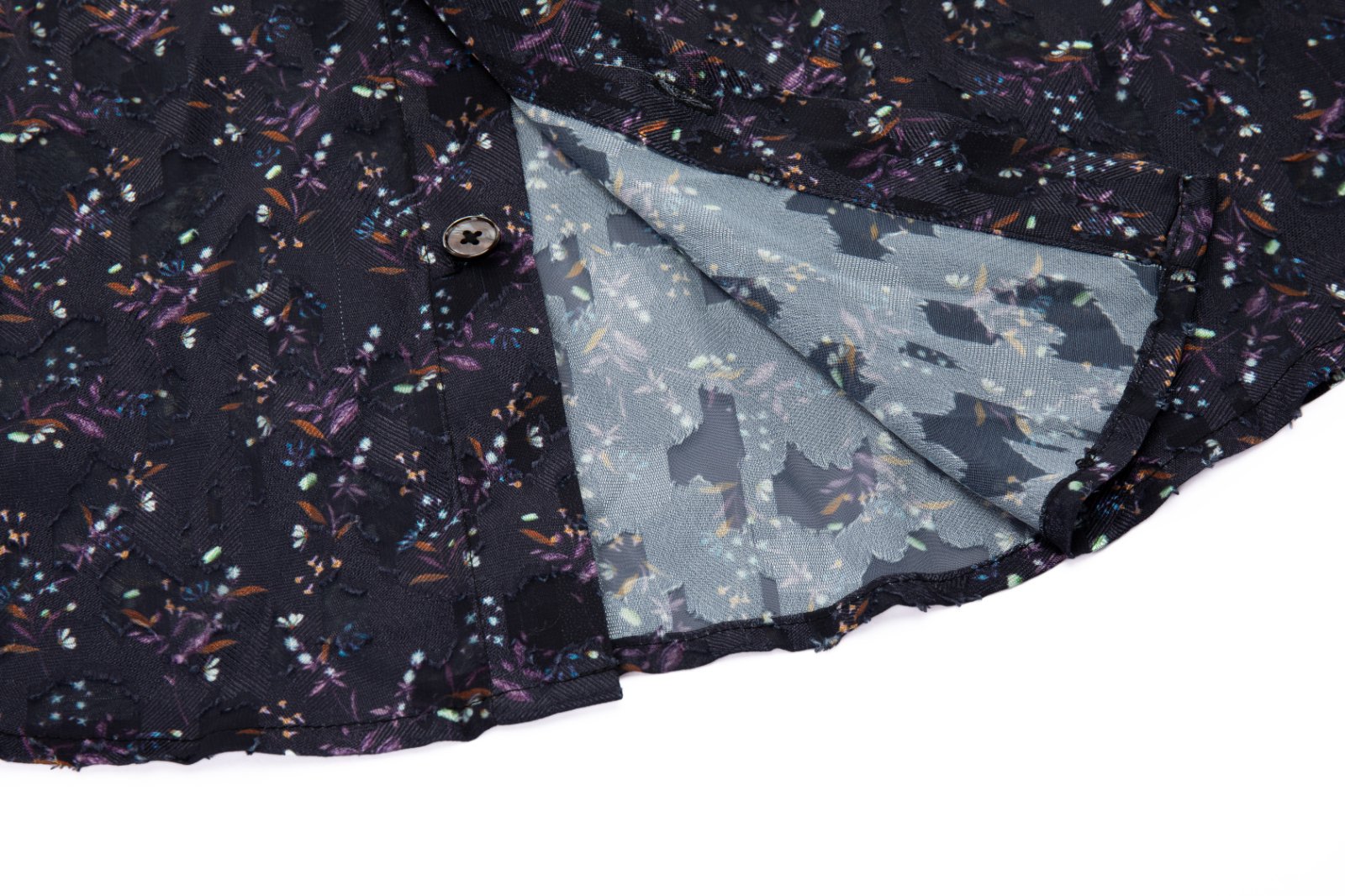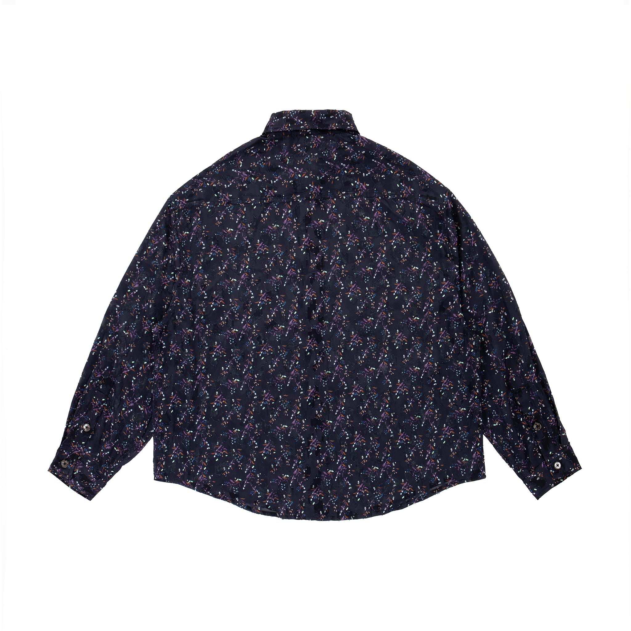 Long-sleeve sheer button-up shirt crafted from lightweight, semi-transparent fabric