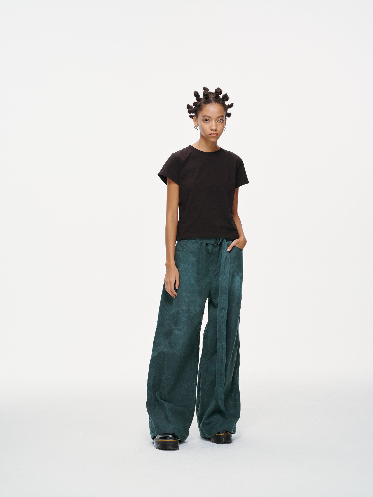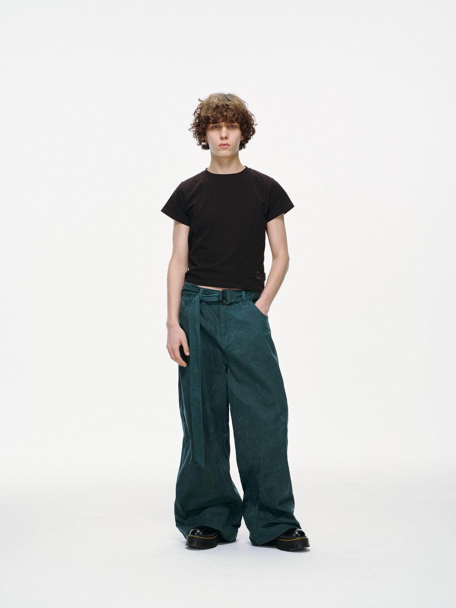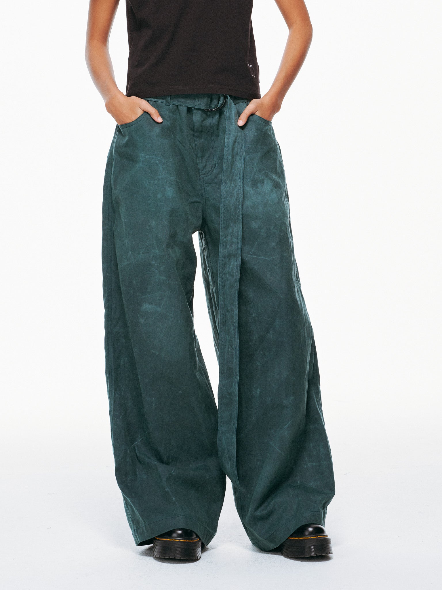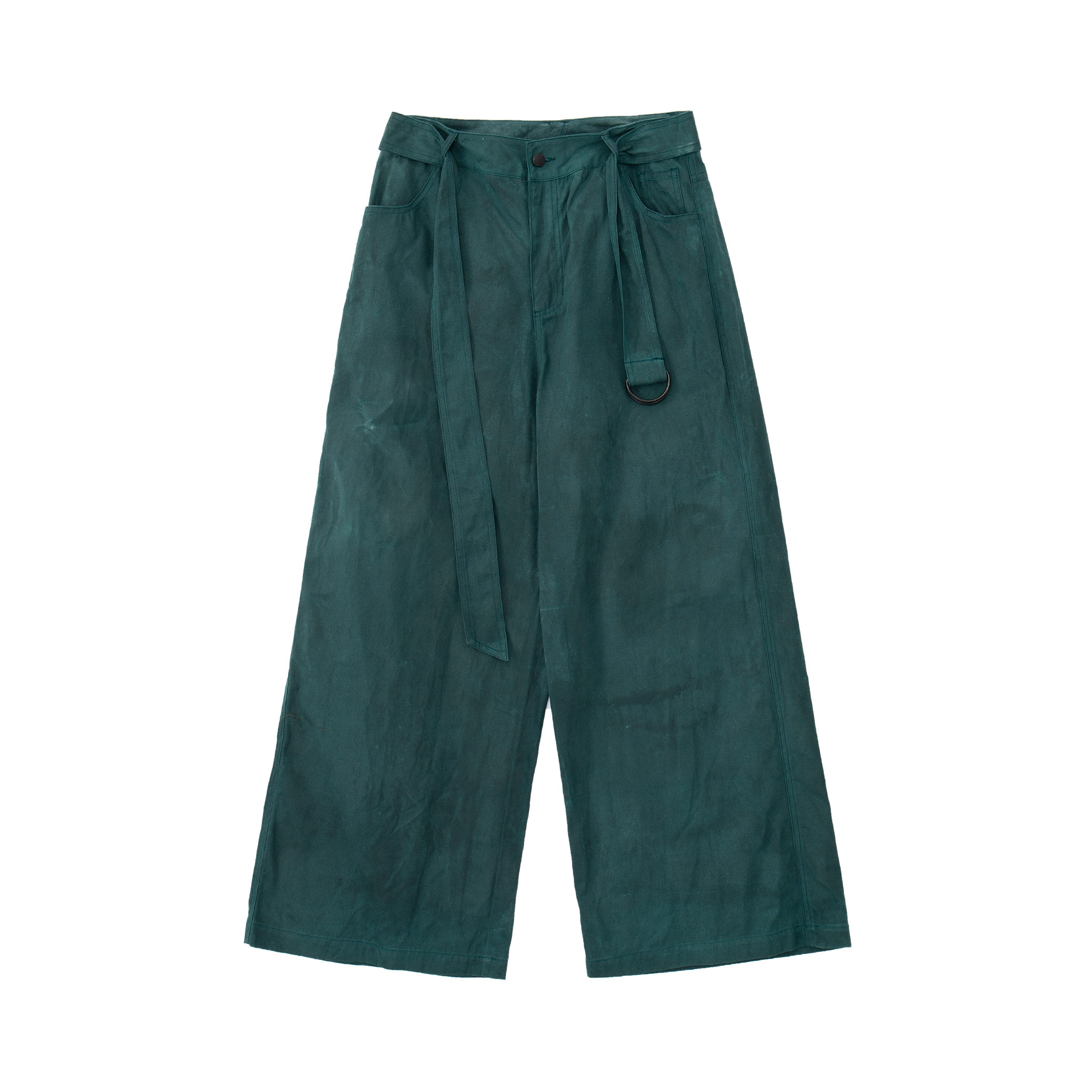 Waxed Wide Leg Pants - Jade Green, Light Wax
