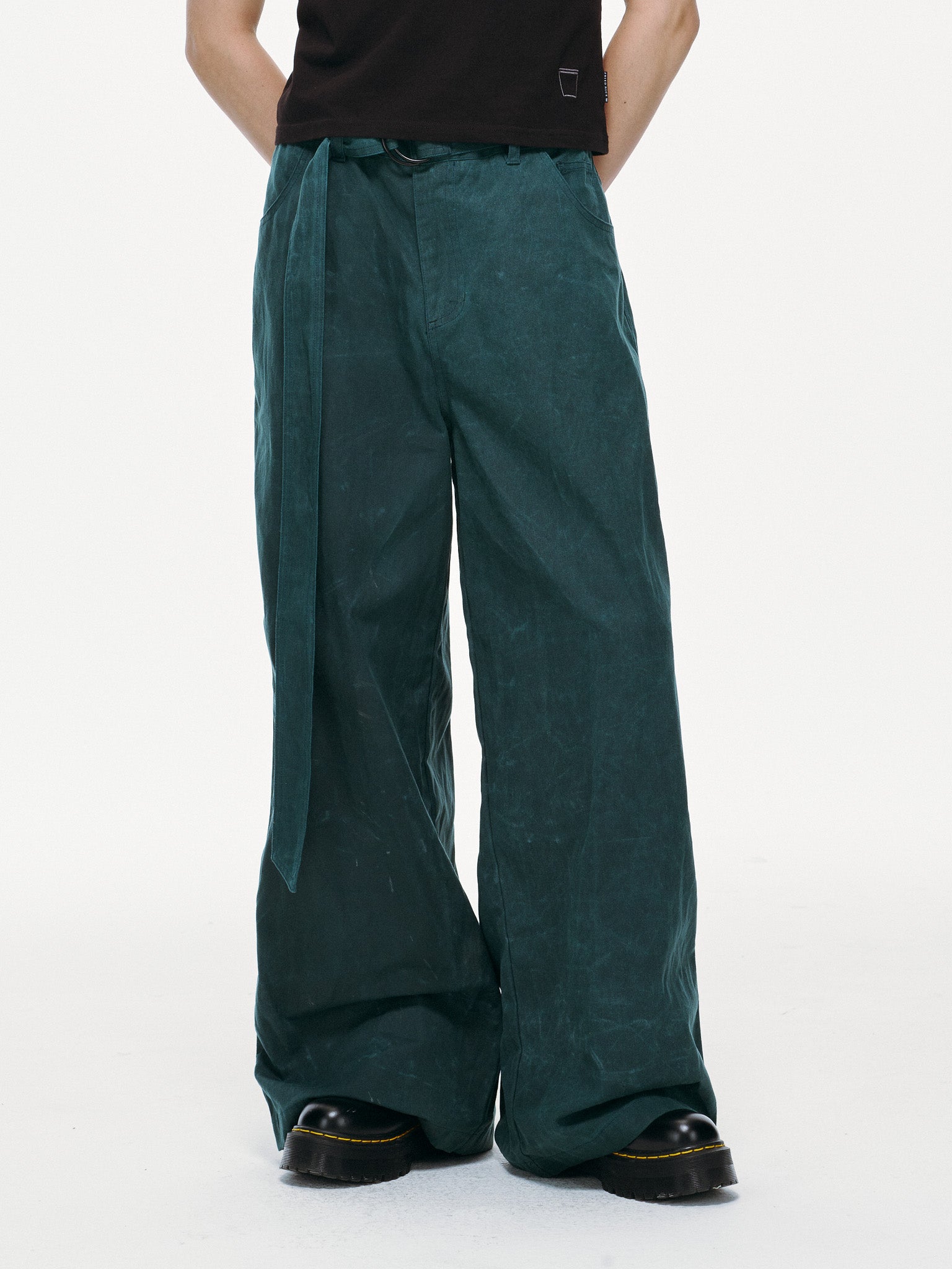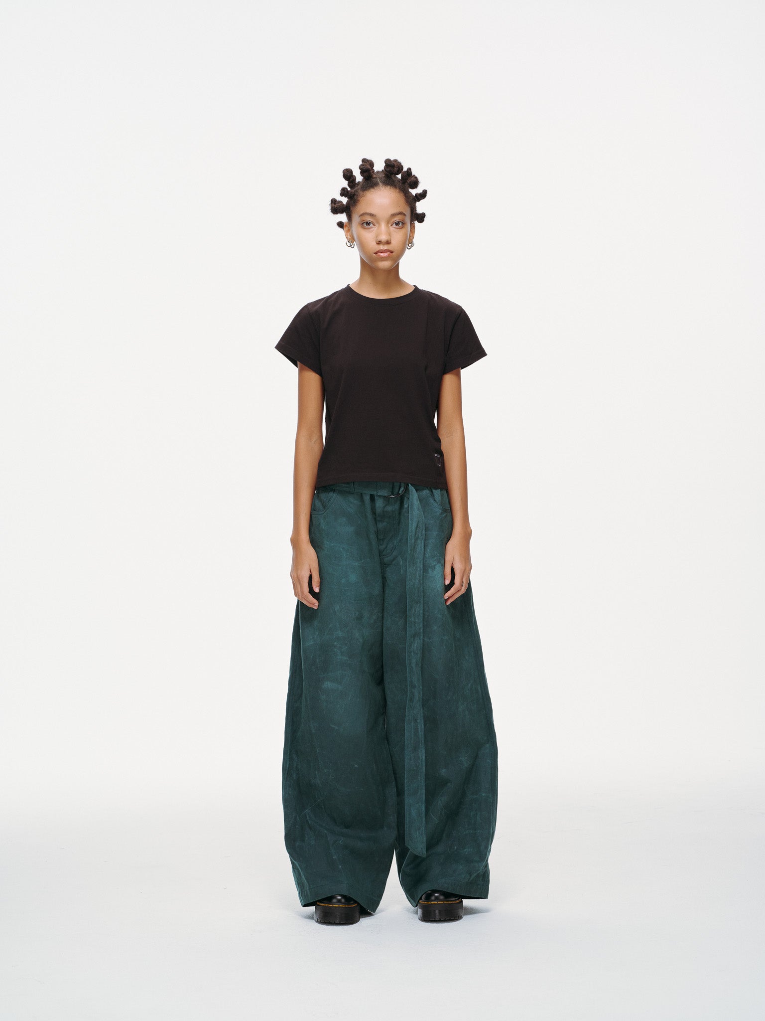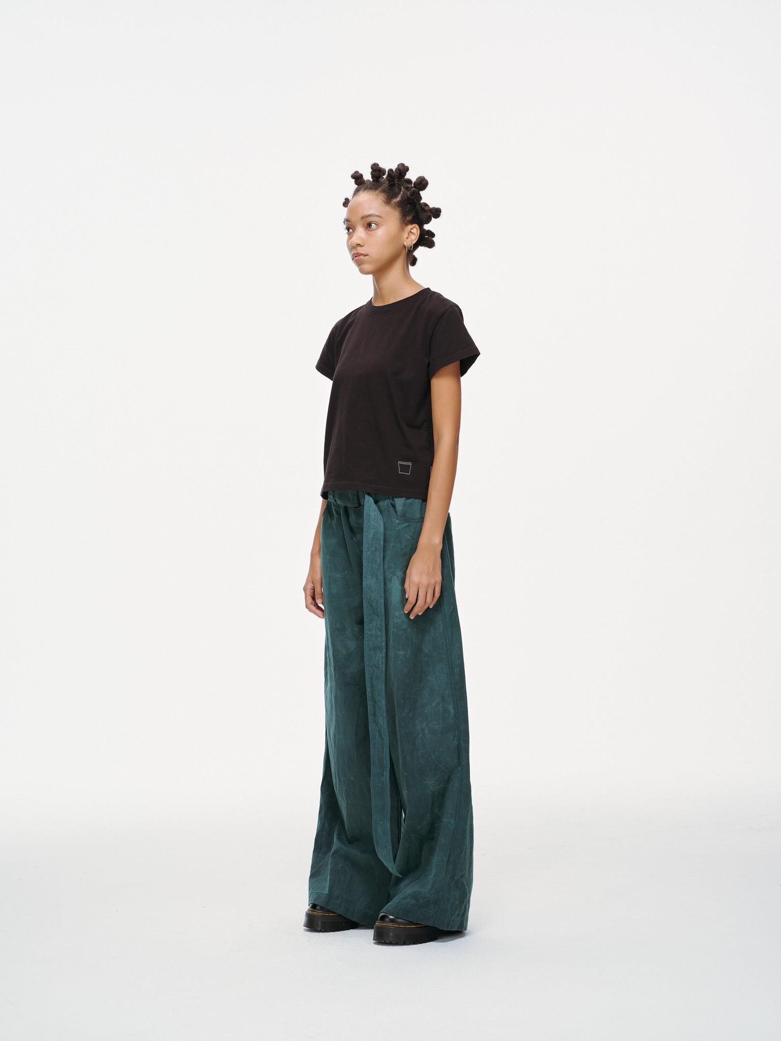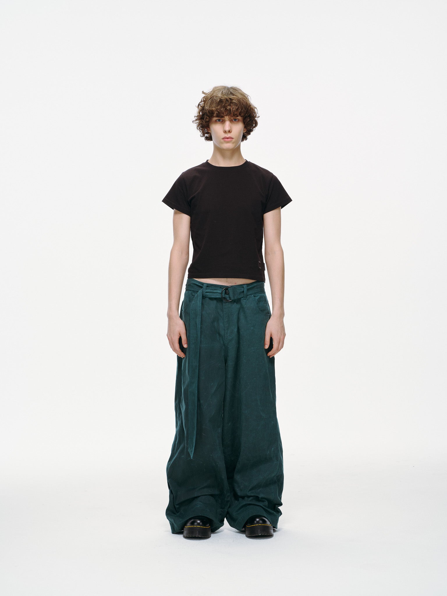 Waxed Wide Leg Pants - Jade Green, Light Wax