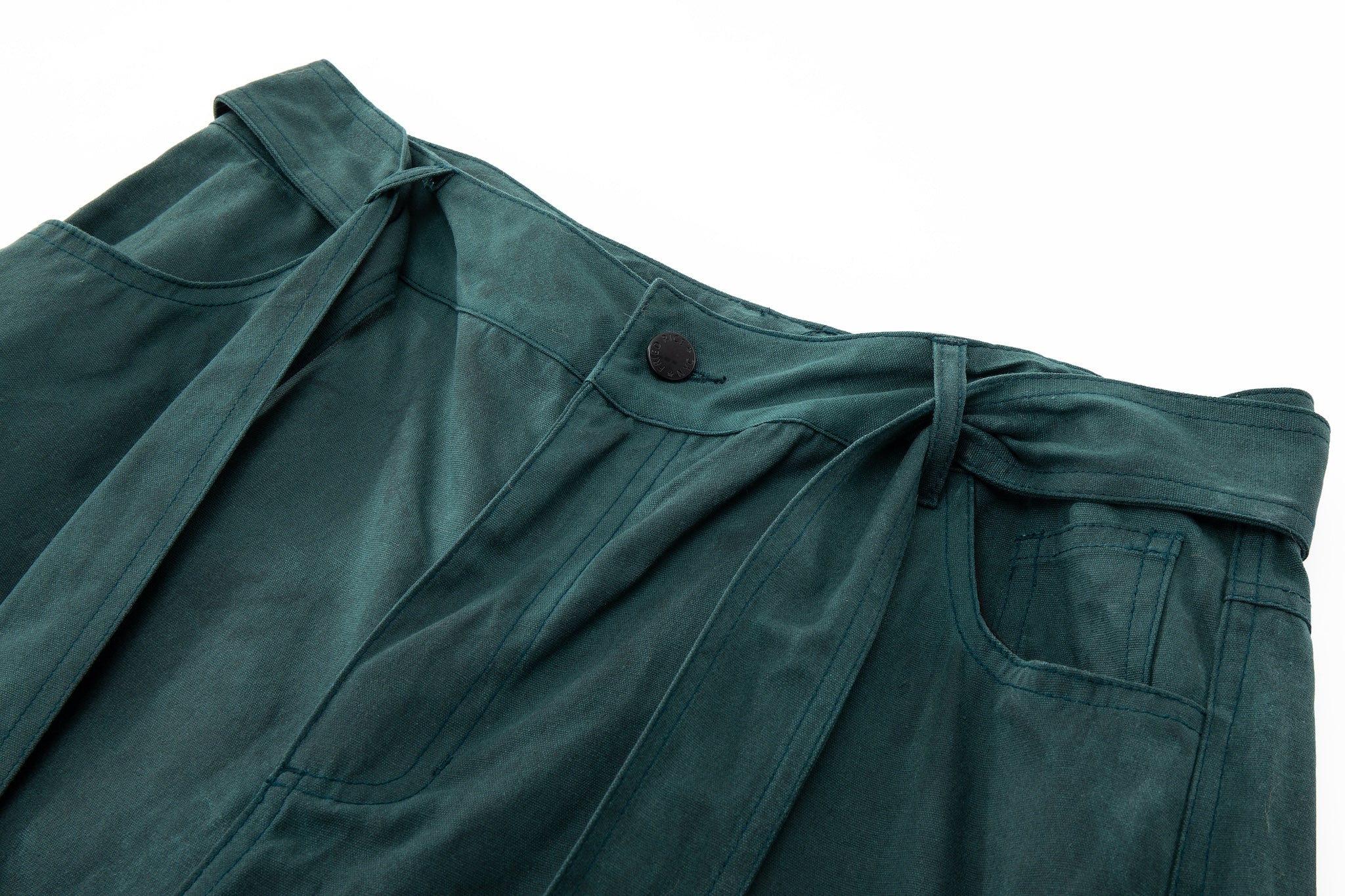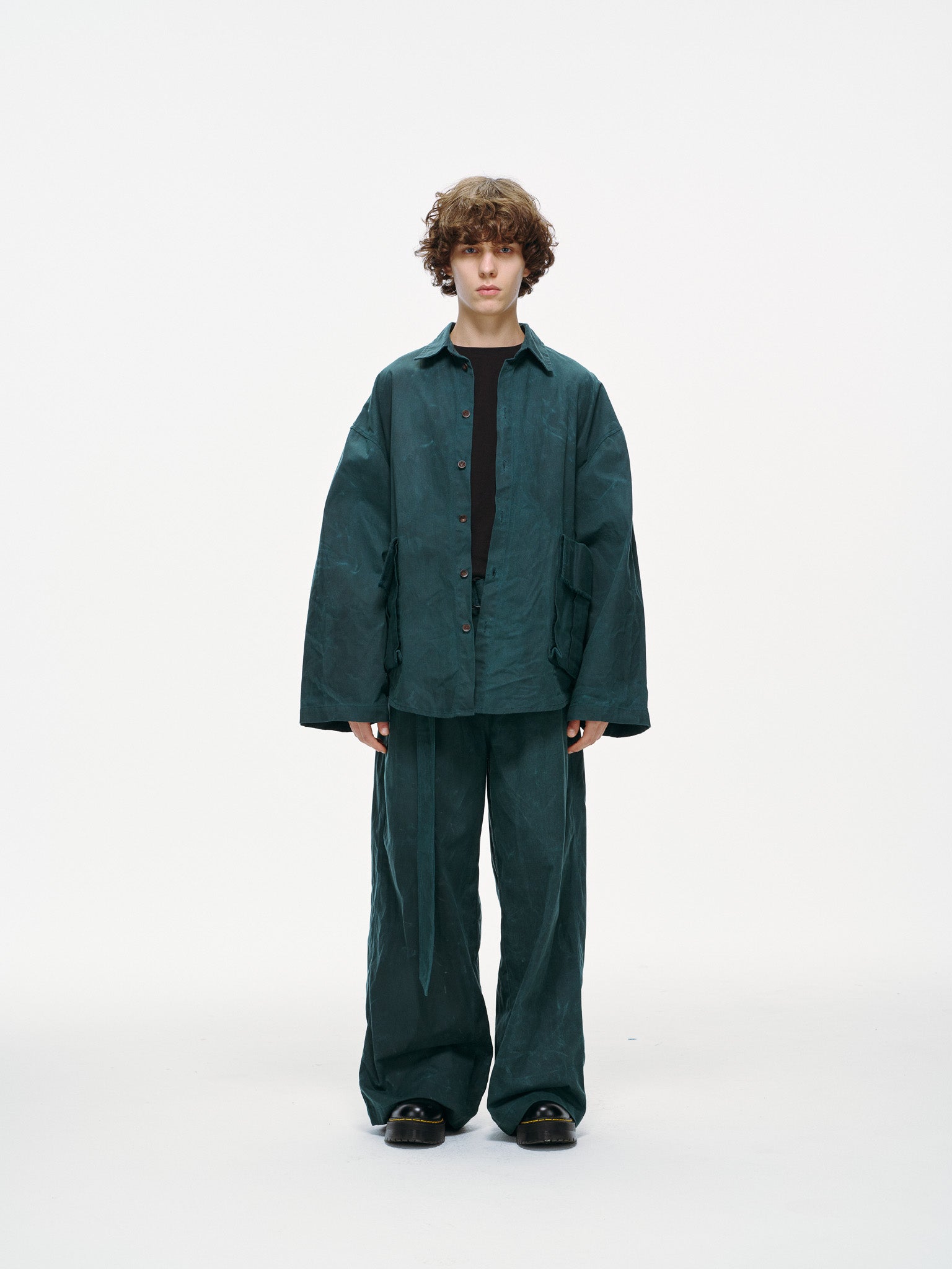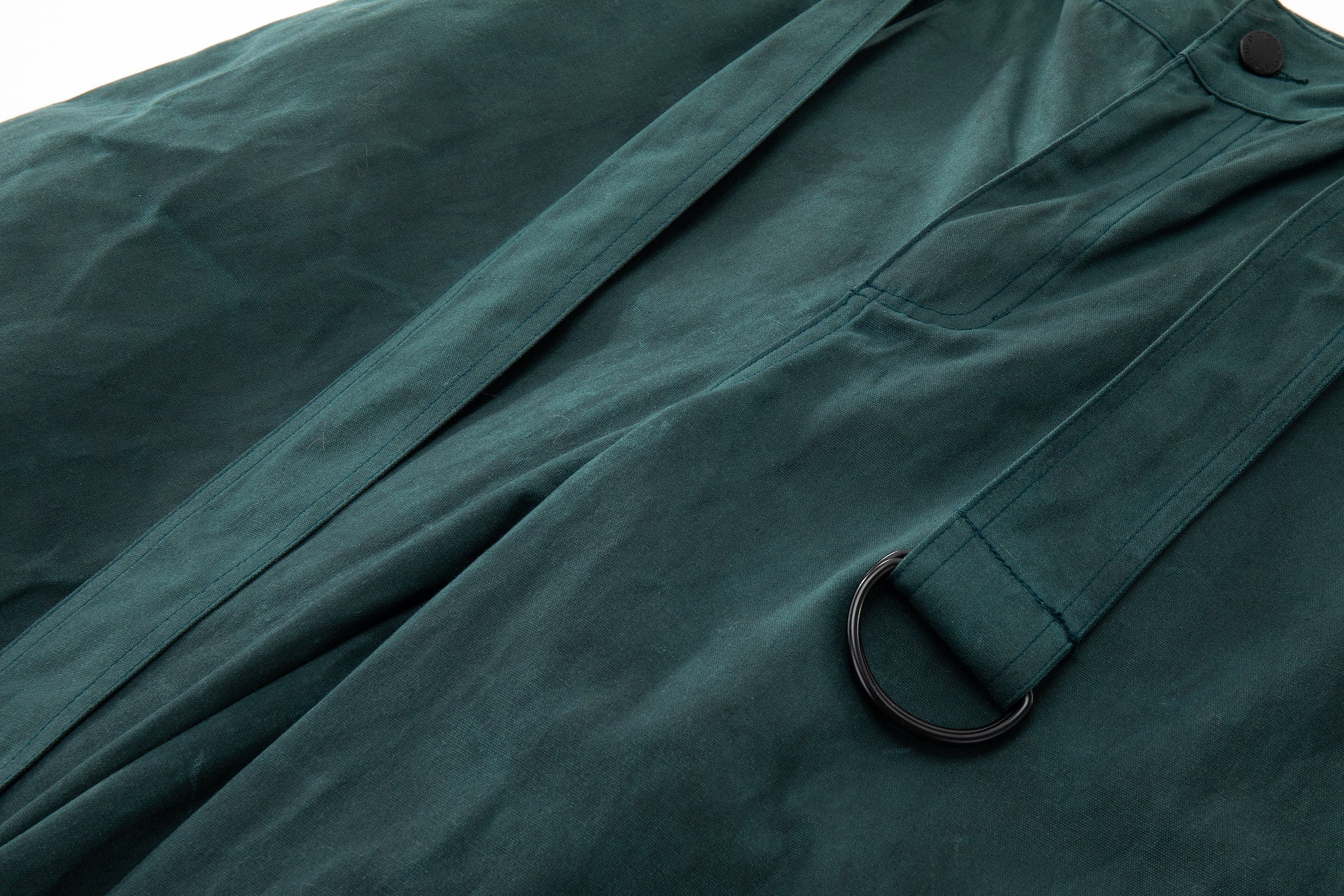 Made in Jade Green waxed cotton fabric with slight sheen and structured drape