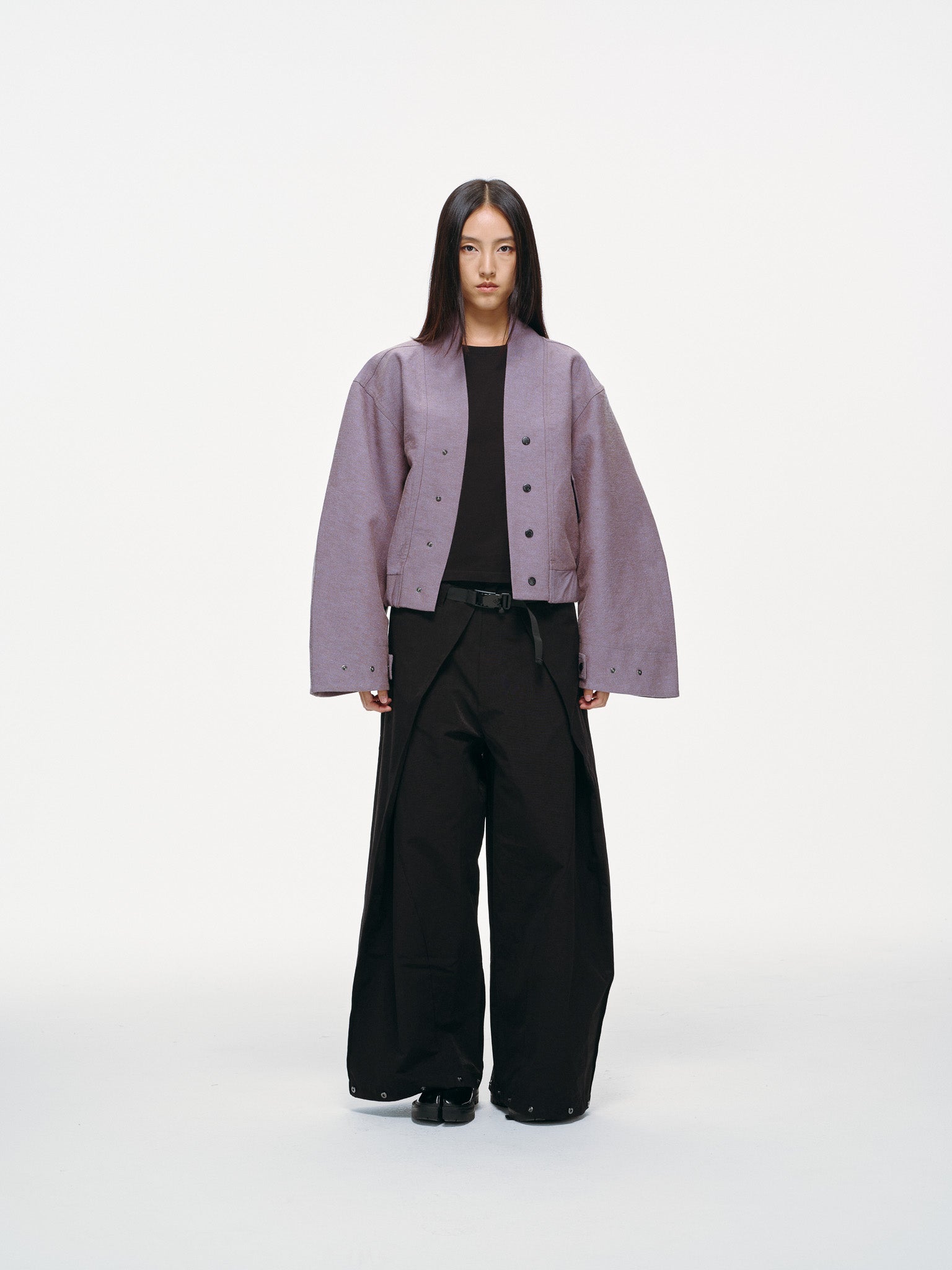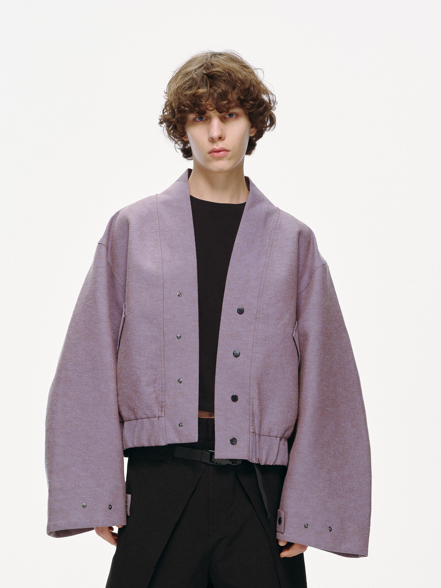 Cropped bomber jacket inspired by Haori style silhouettes