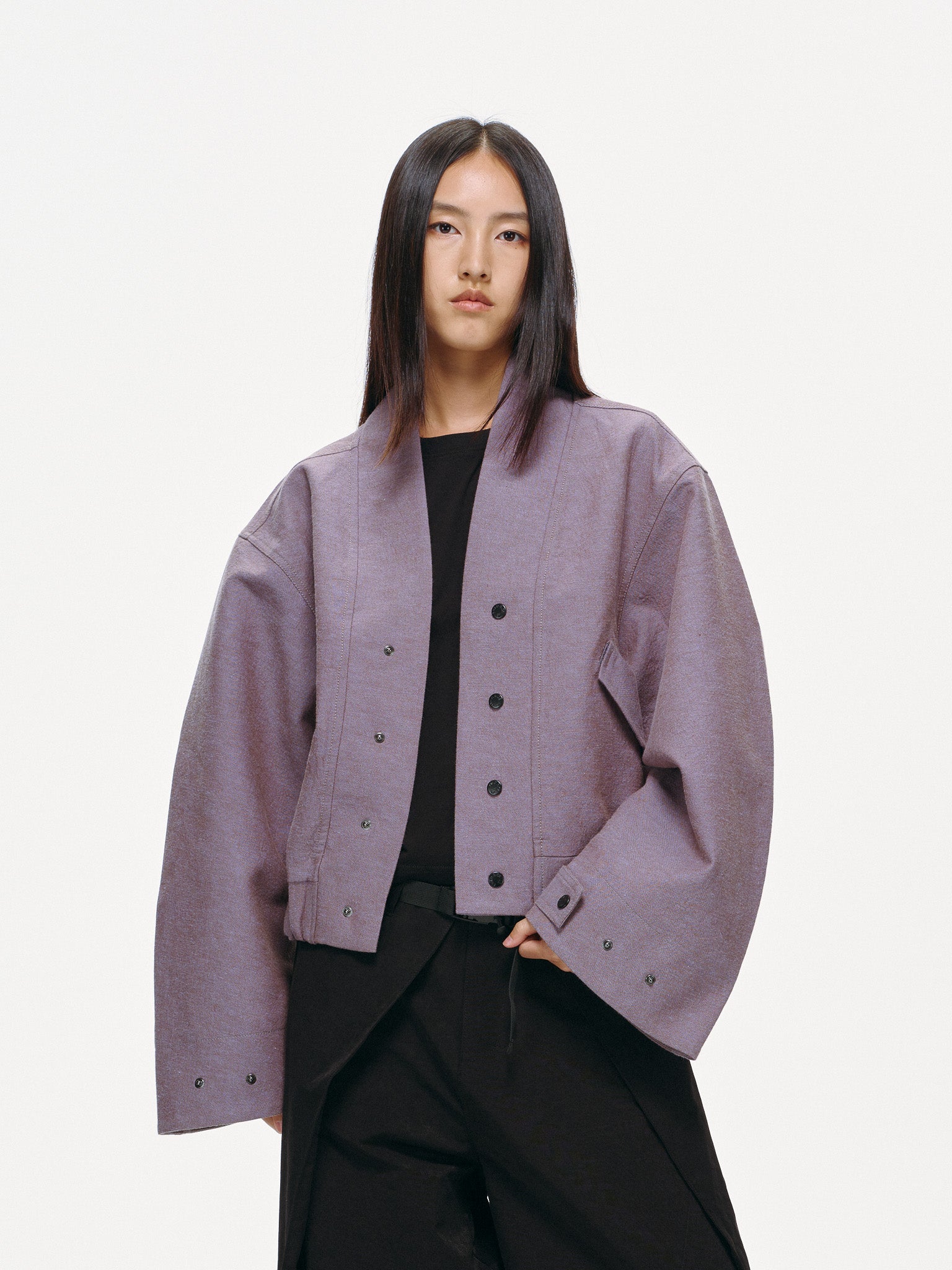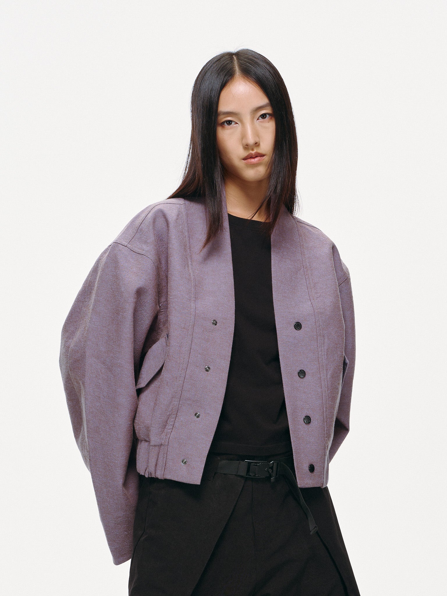 Haori-Inspired Bomber Jacket - Lilac