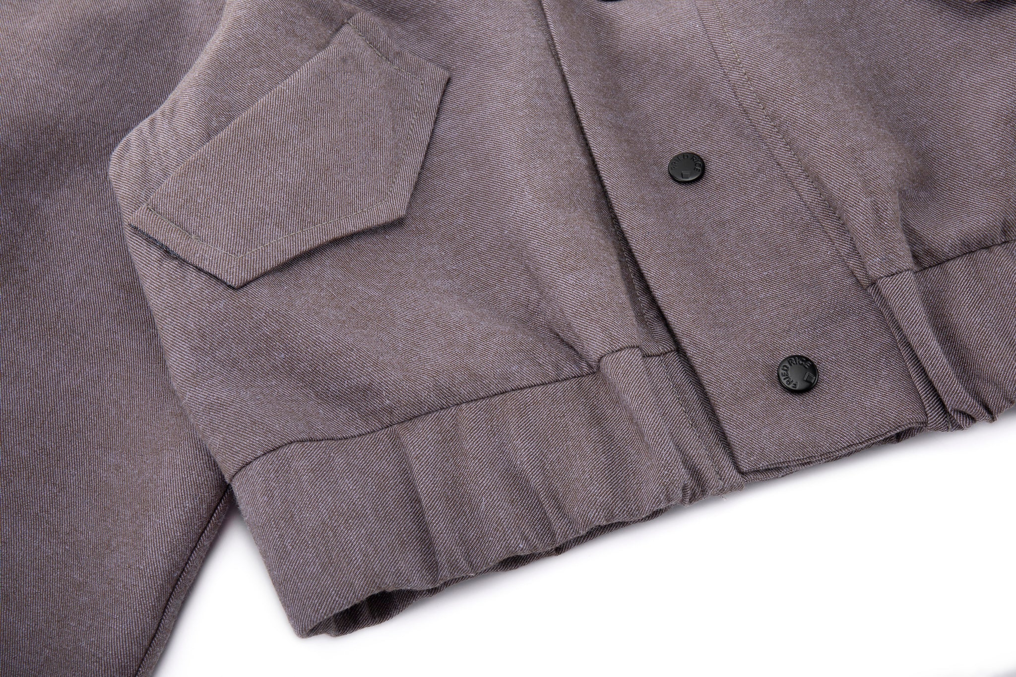 Front snap button closure with tonal matte hardware
