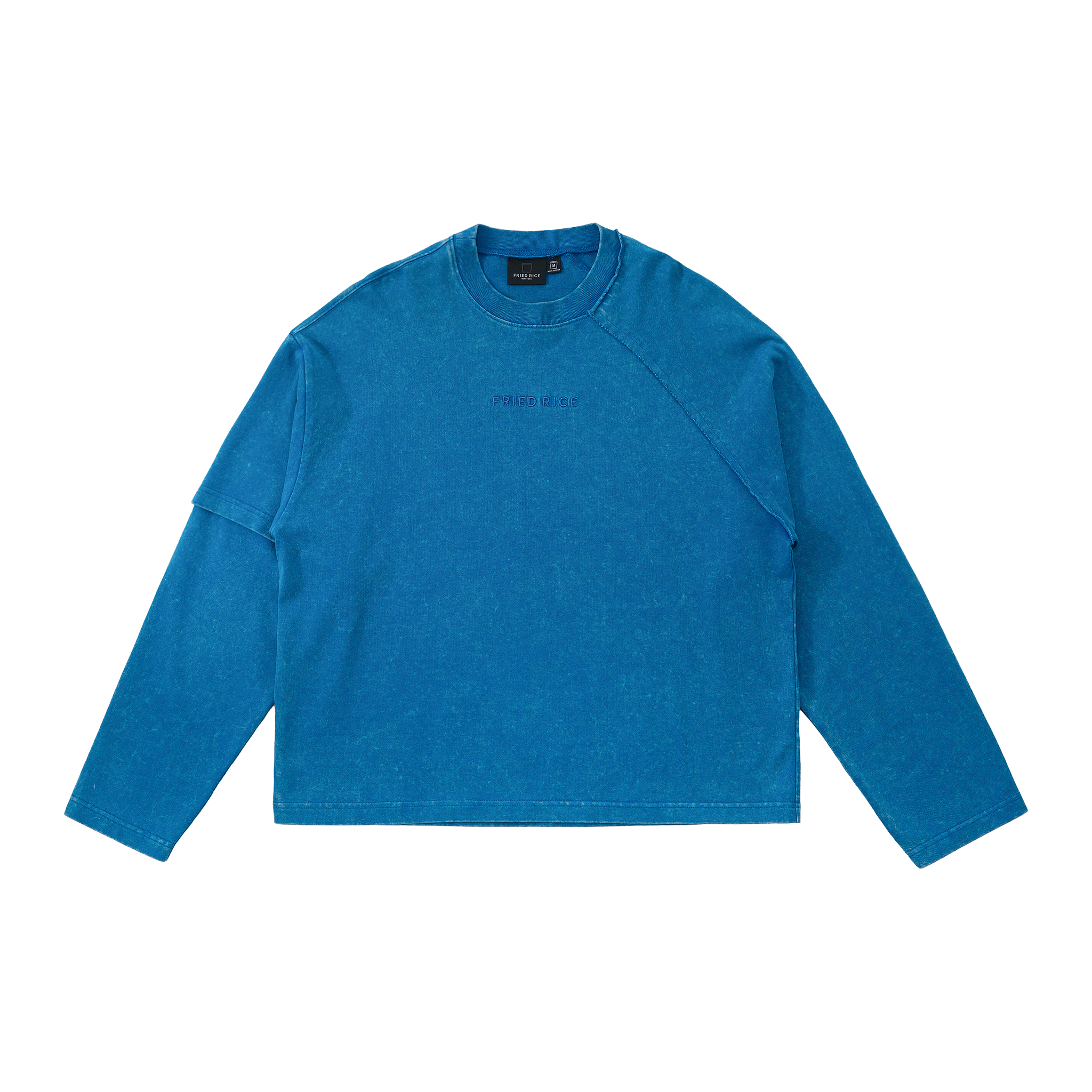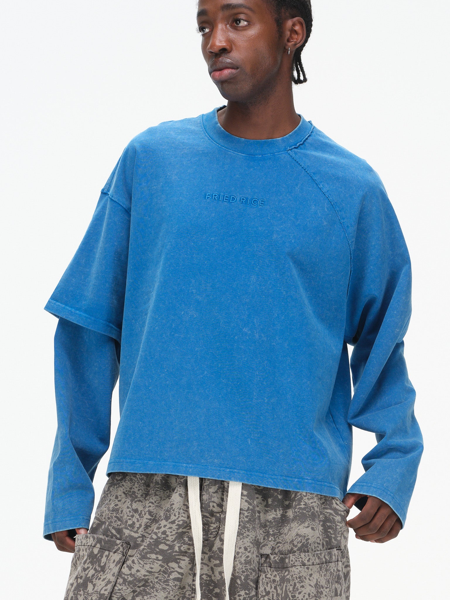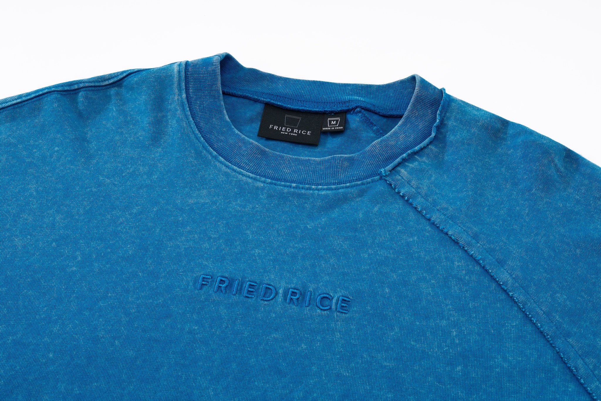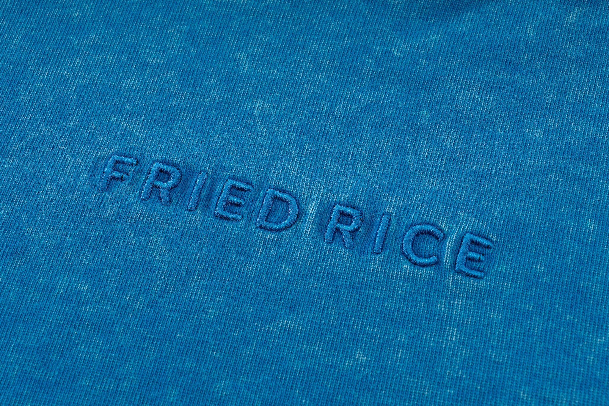 Crewneck long sleeve shirt in washed blue with tonal FRIED RICE embroidered logo