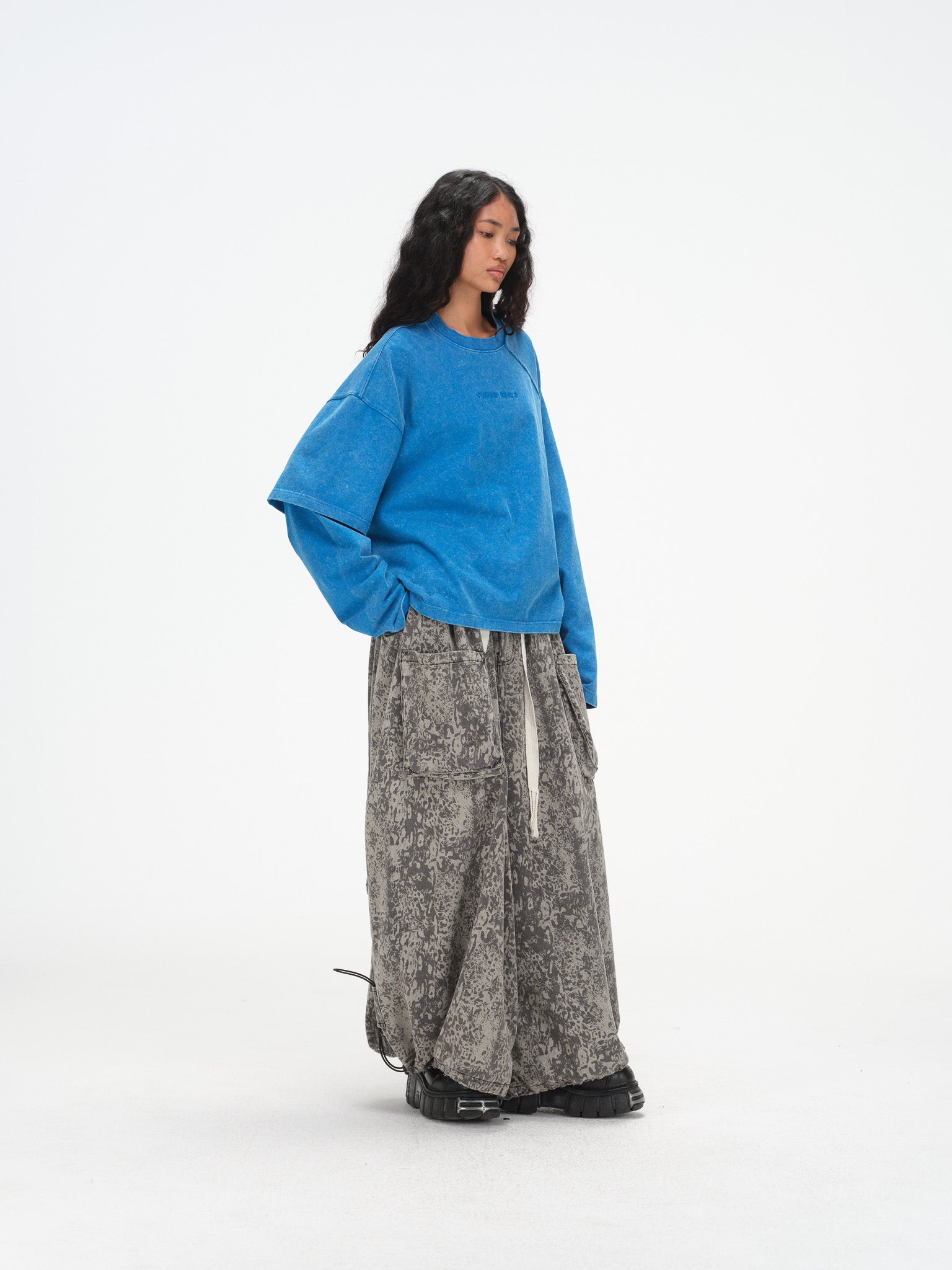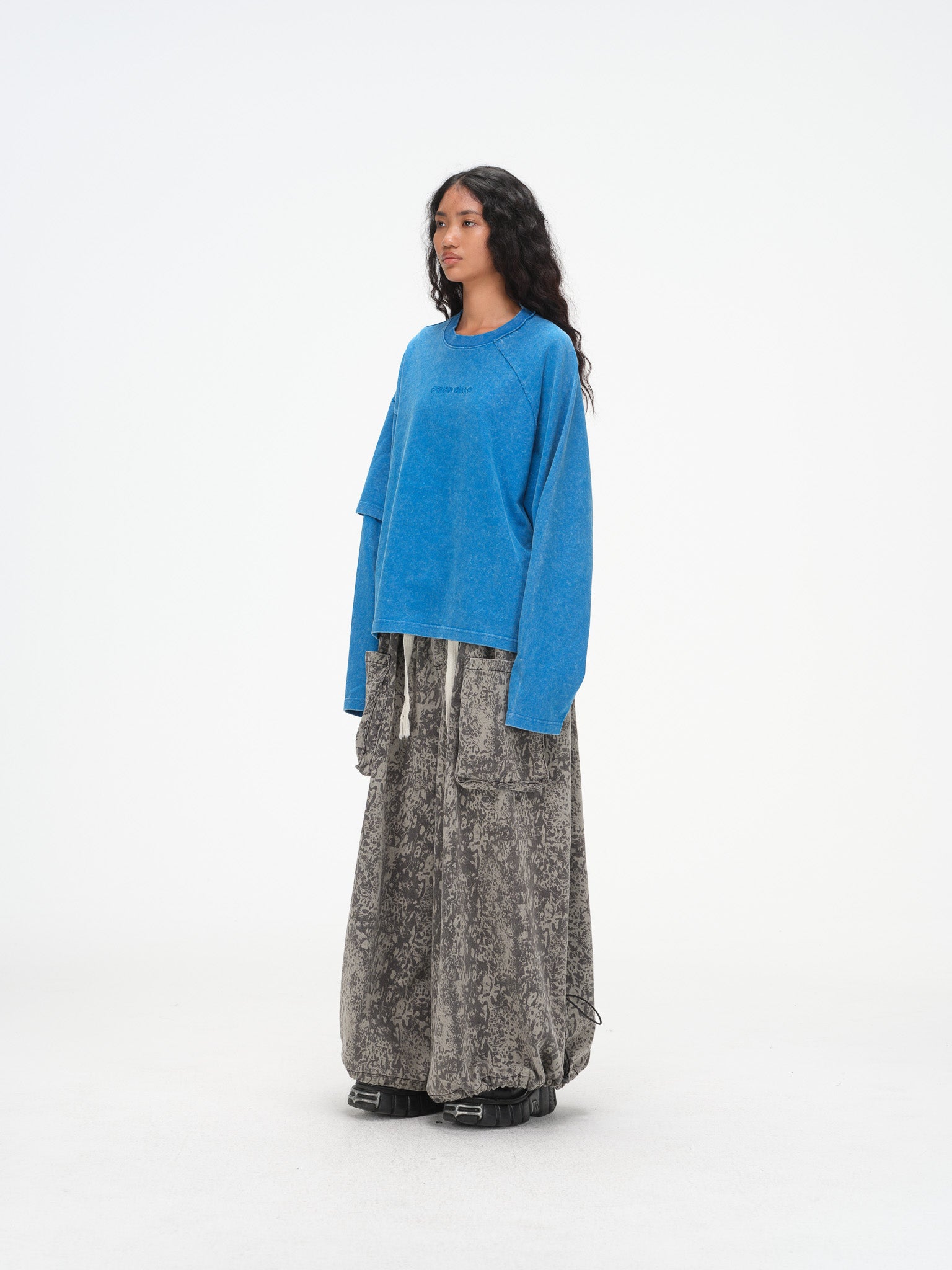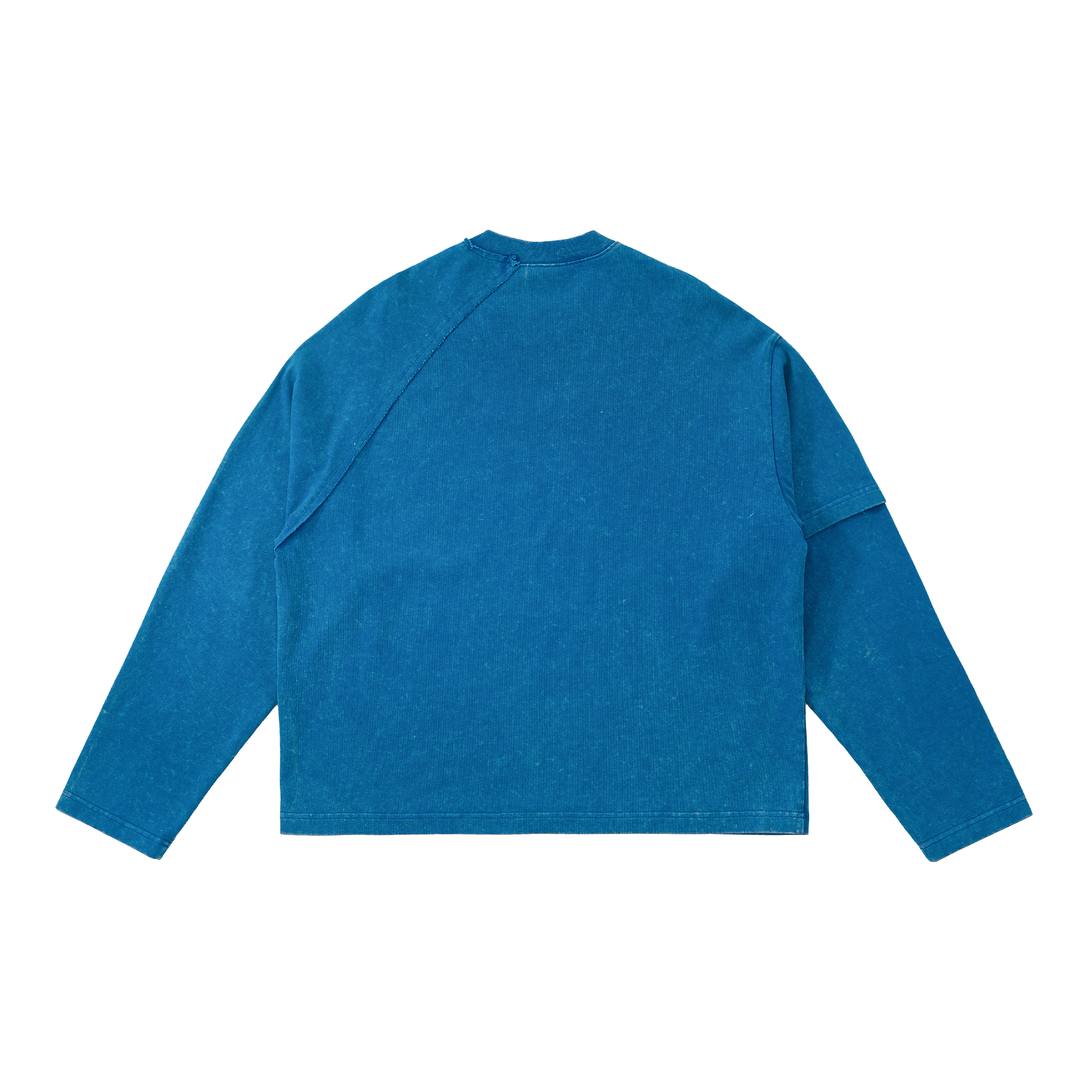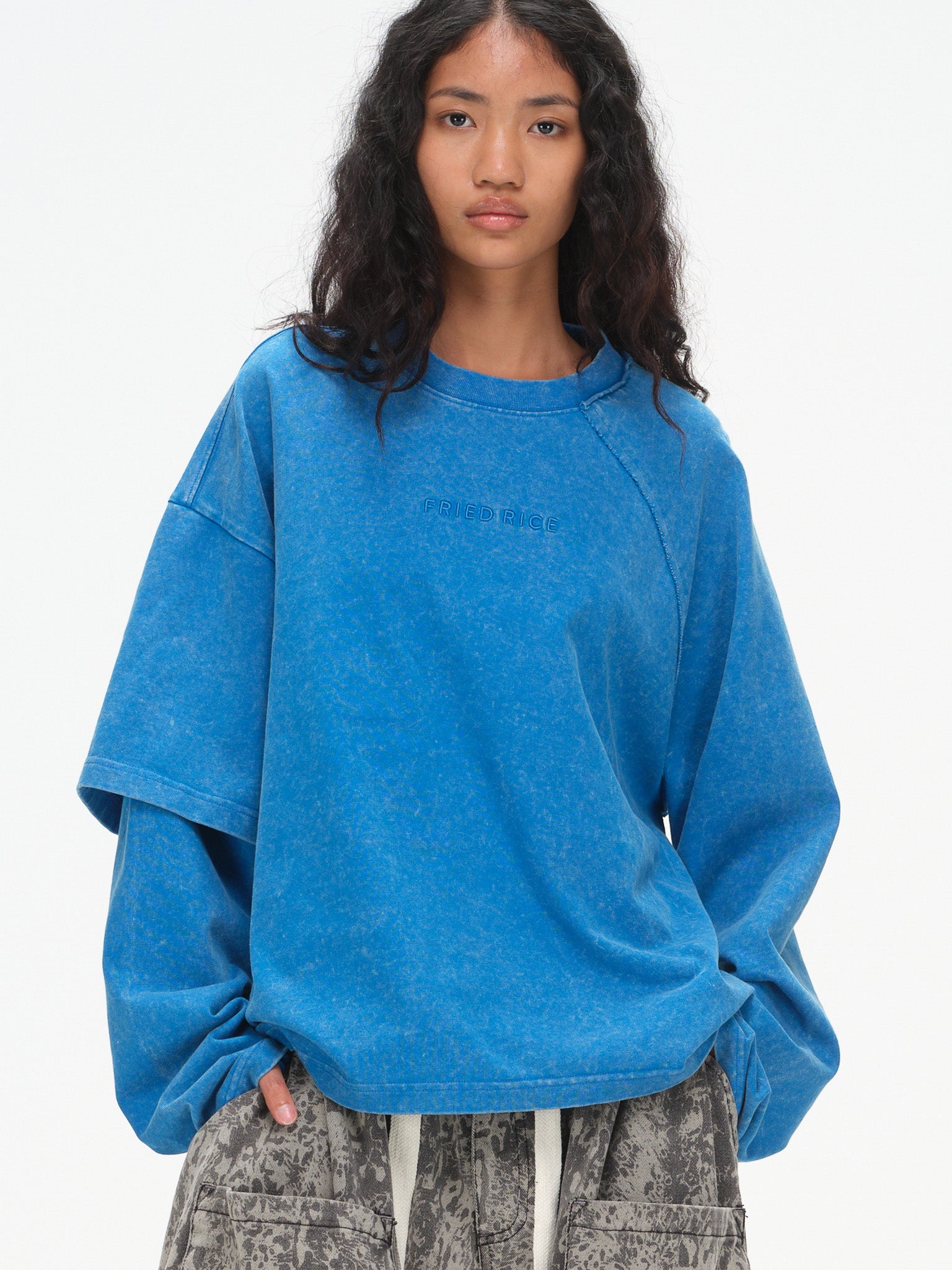 Crewneck long sleeve shirt in washed blue with tonal FRIED RICE embroidered logo