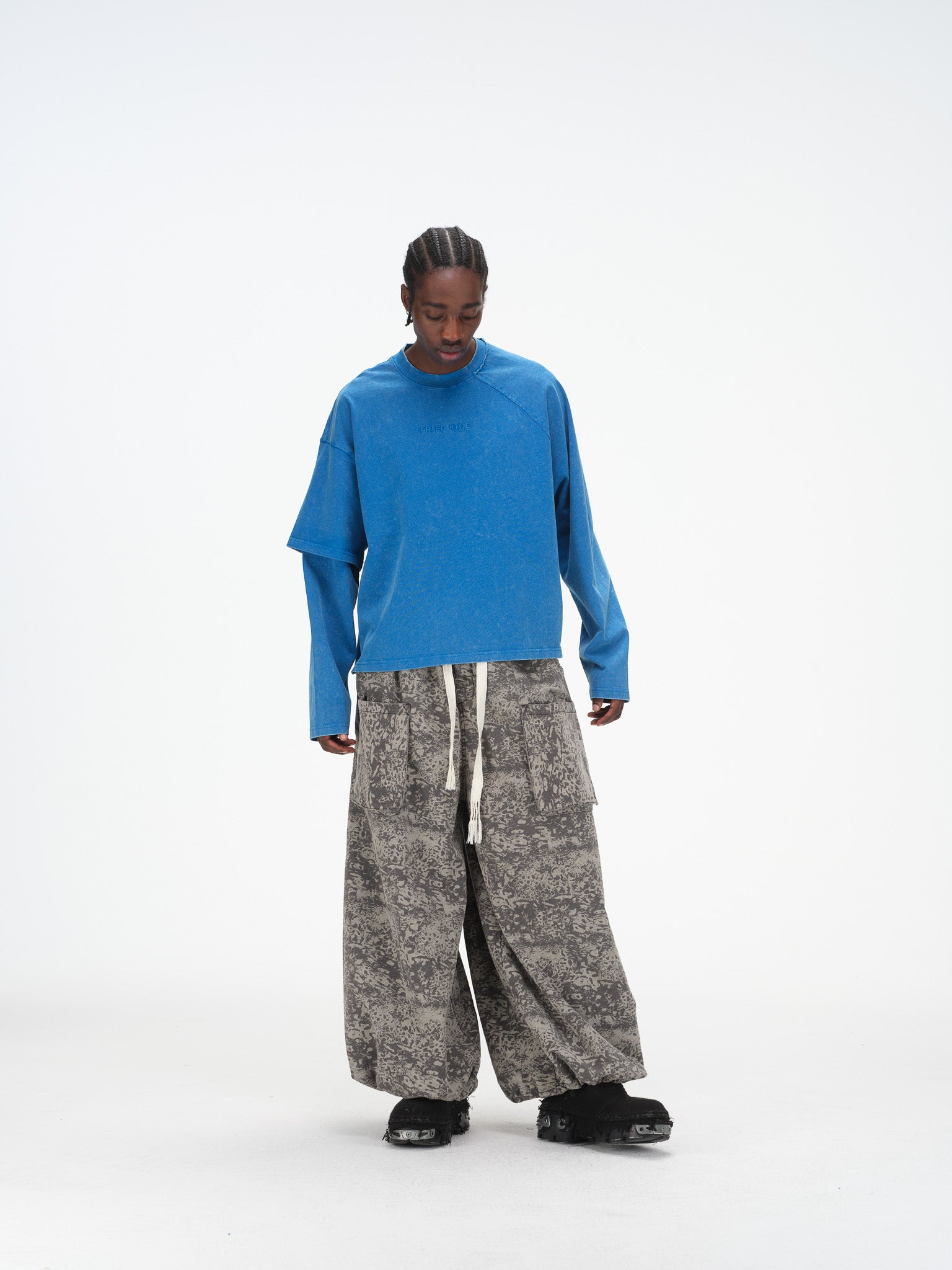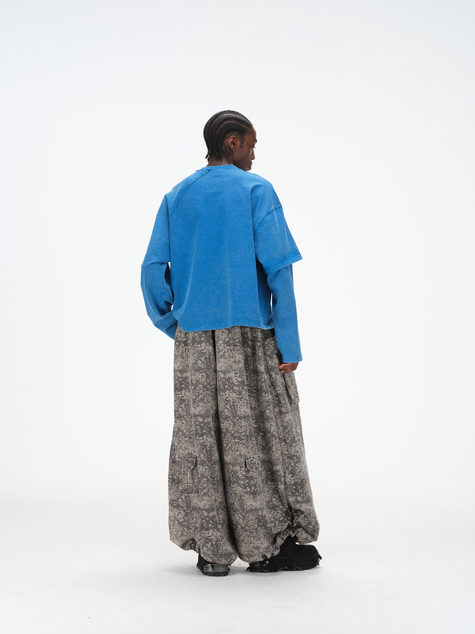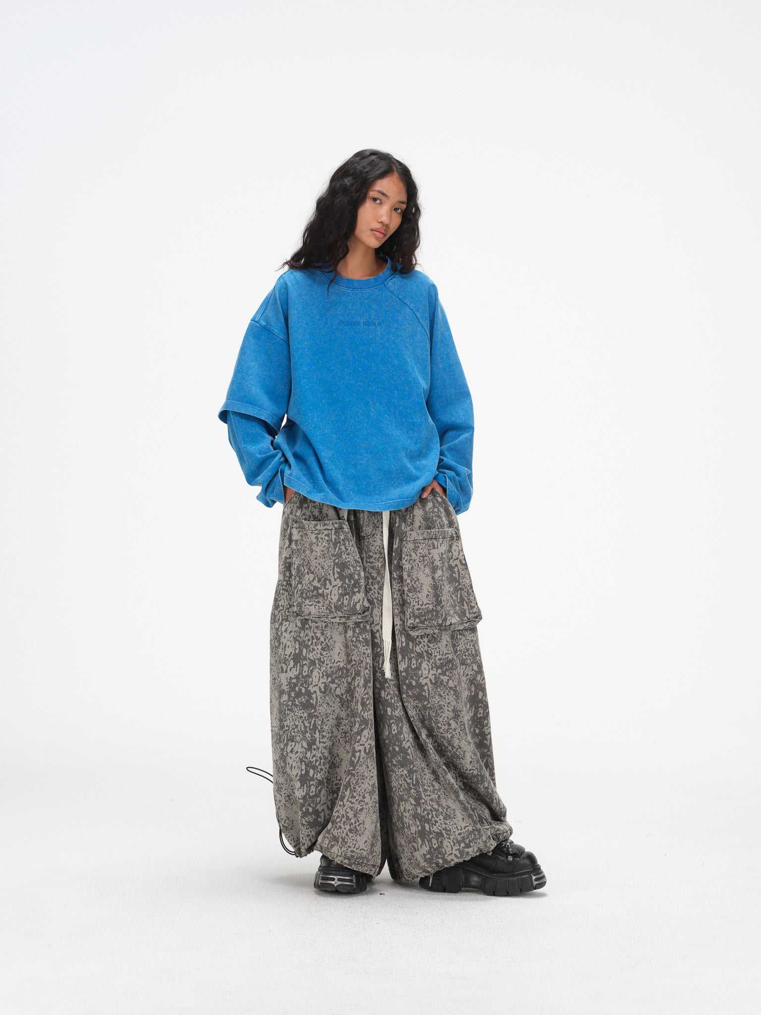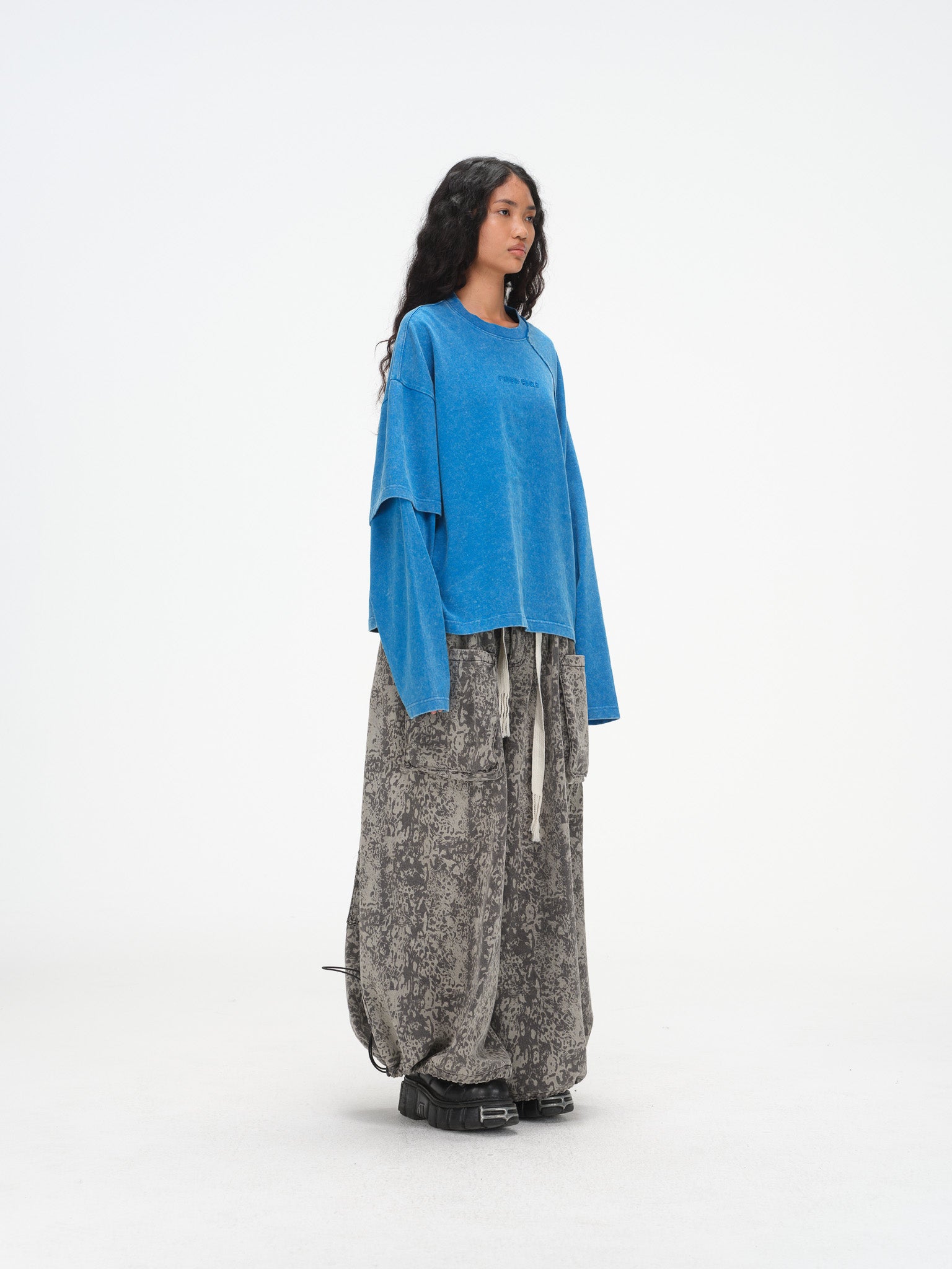 Crewneck long sleeve shirt in washed blue with tonal FRIED RICE embroidered logo
