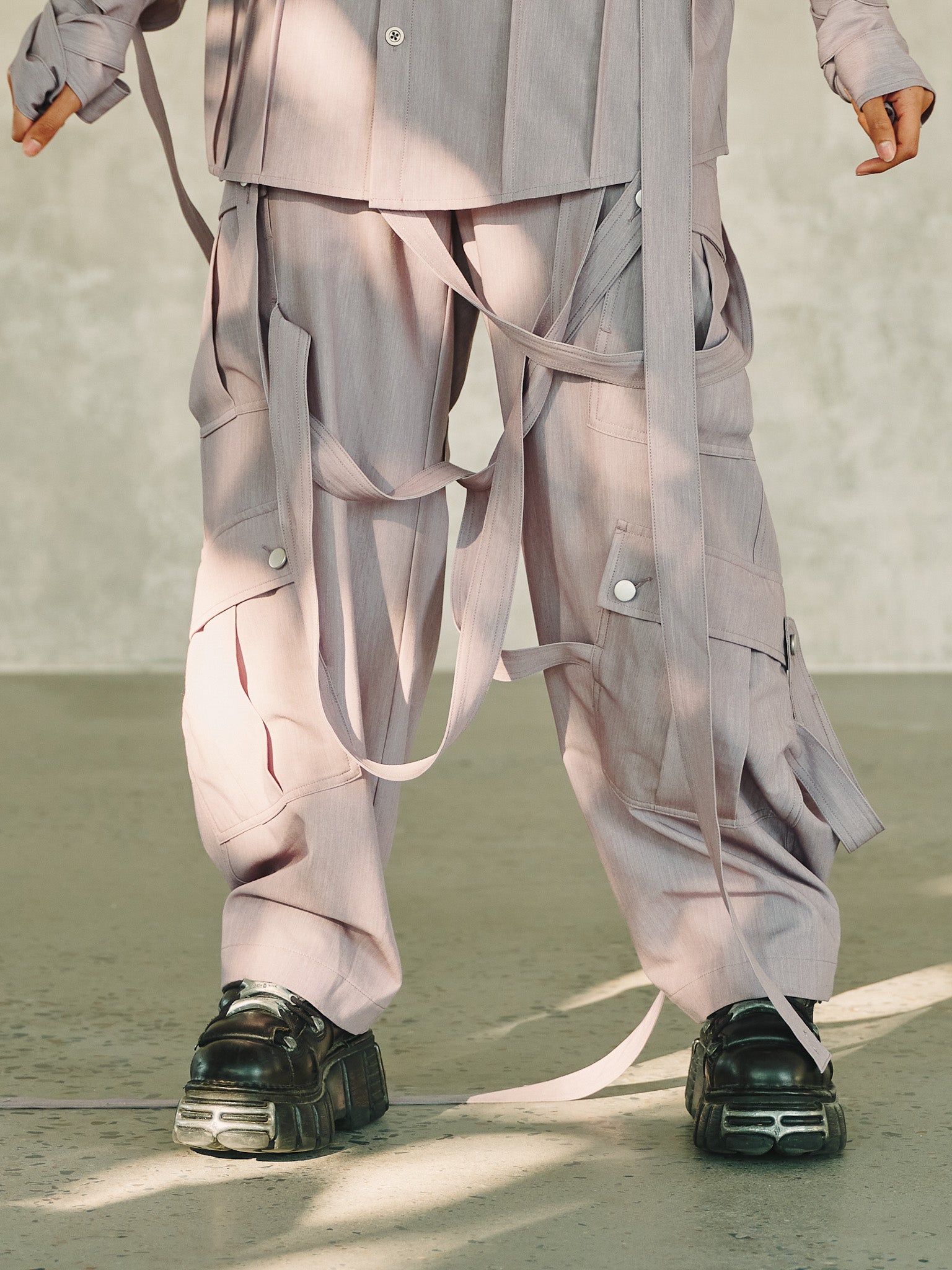 Cargo Strap Pants - Lavender Grey
