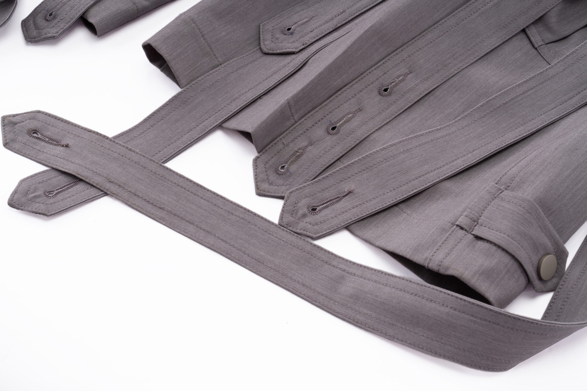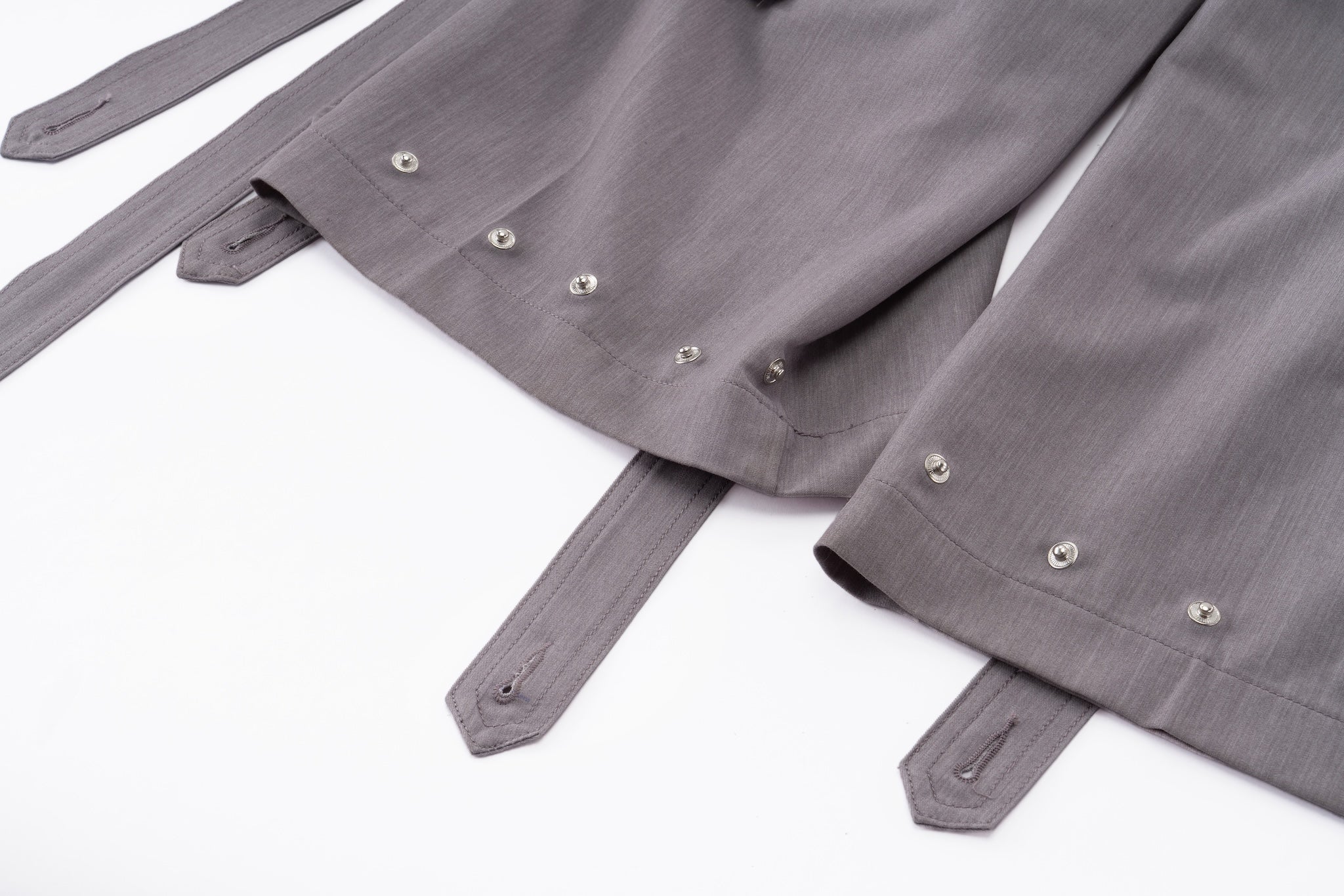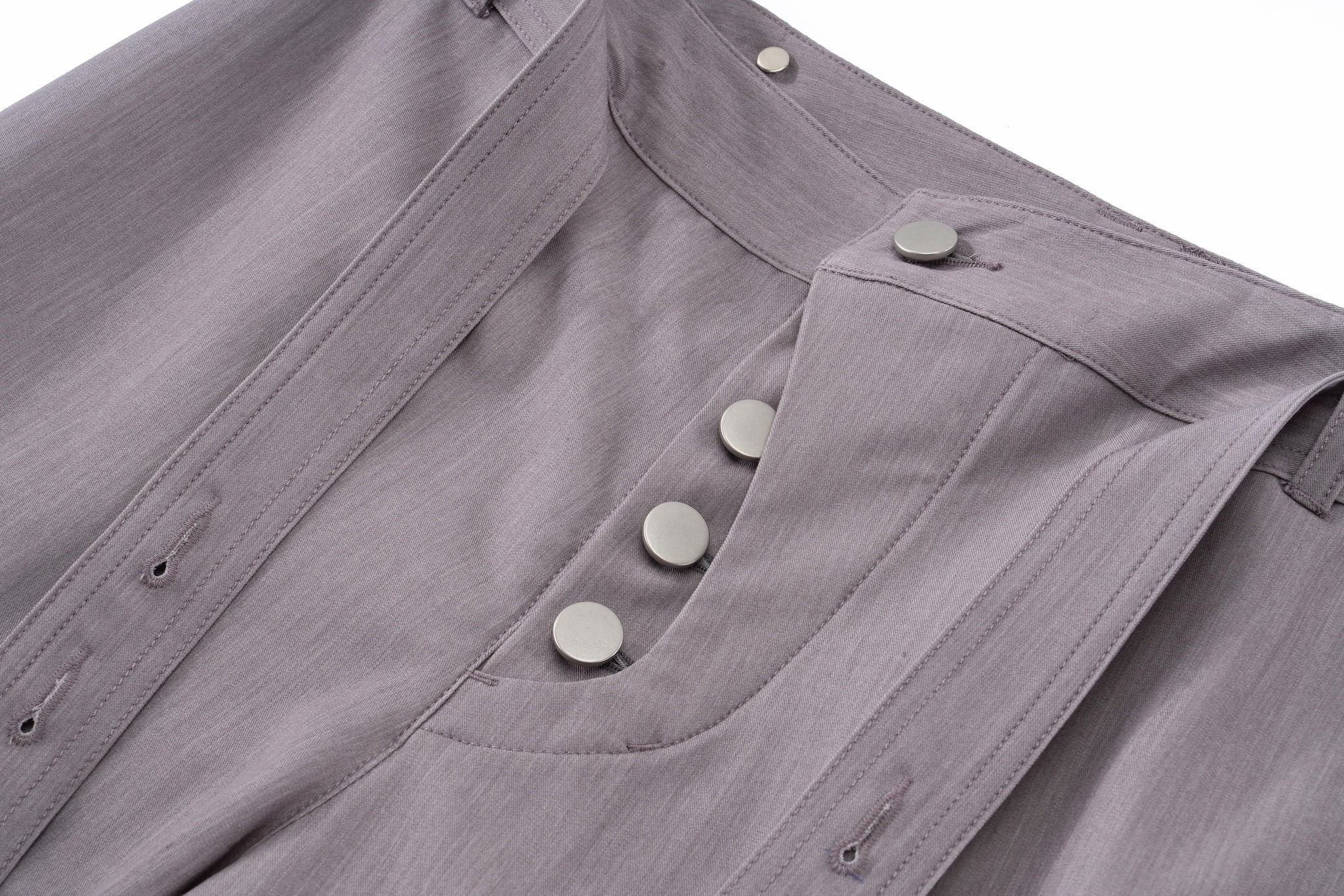 Can be worn individually or styled as a coordinated set: Styleable Strap Long Sleeve Button Up - Lavender Grey