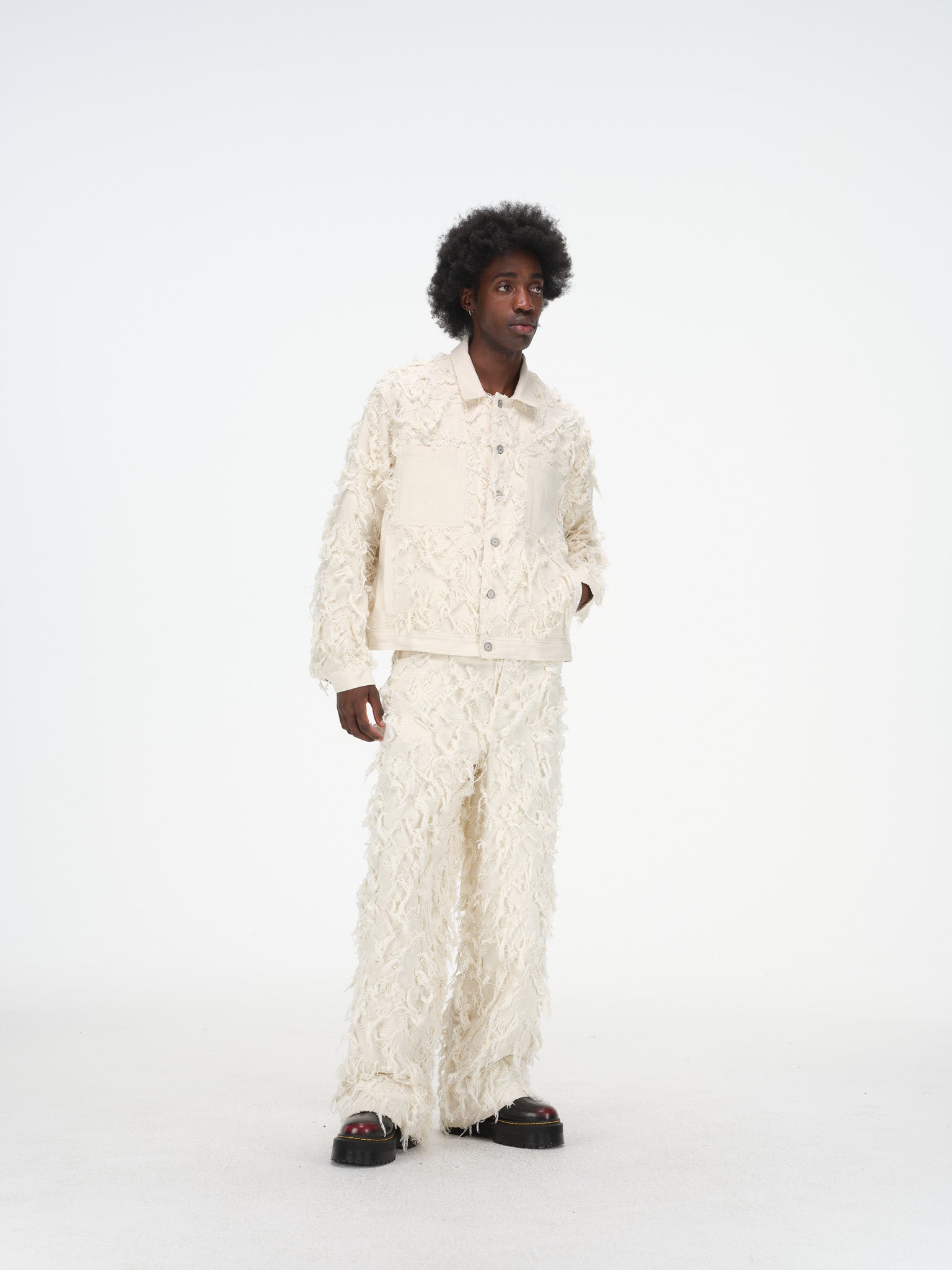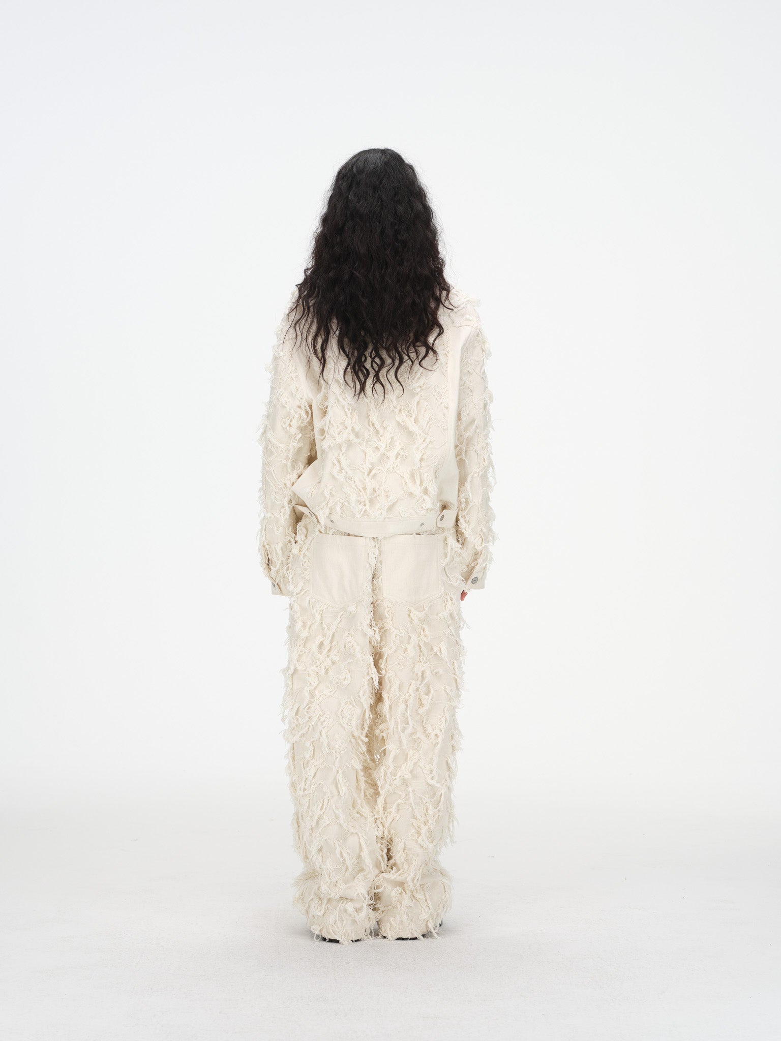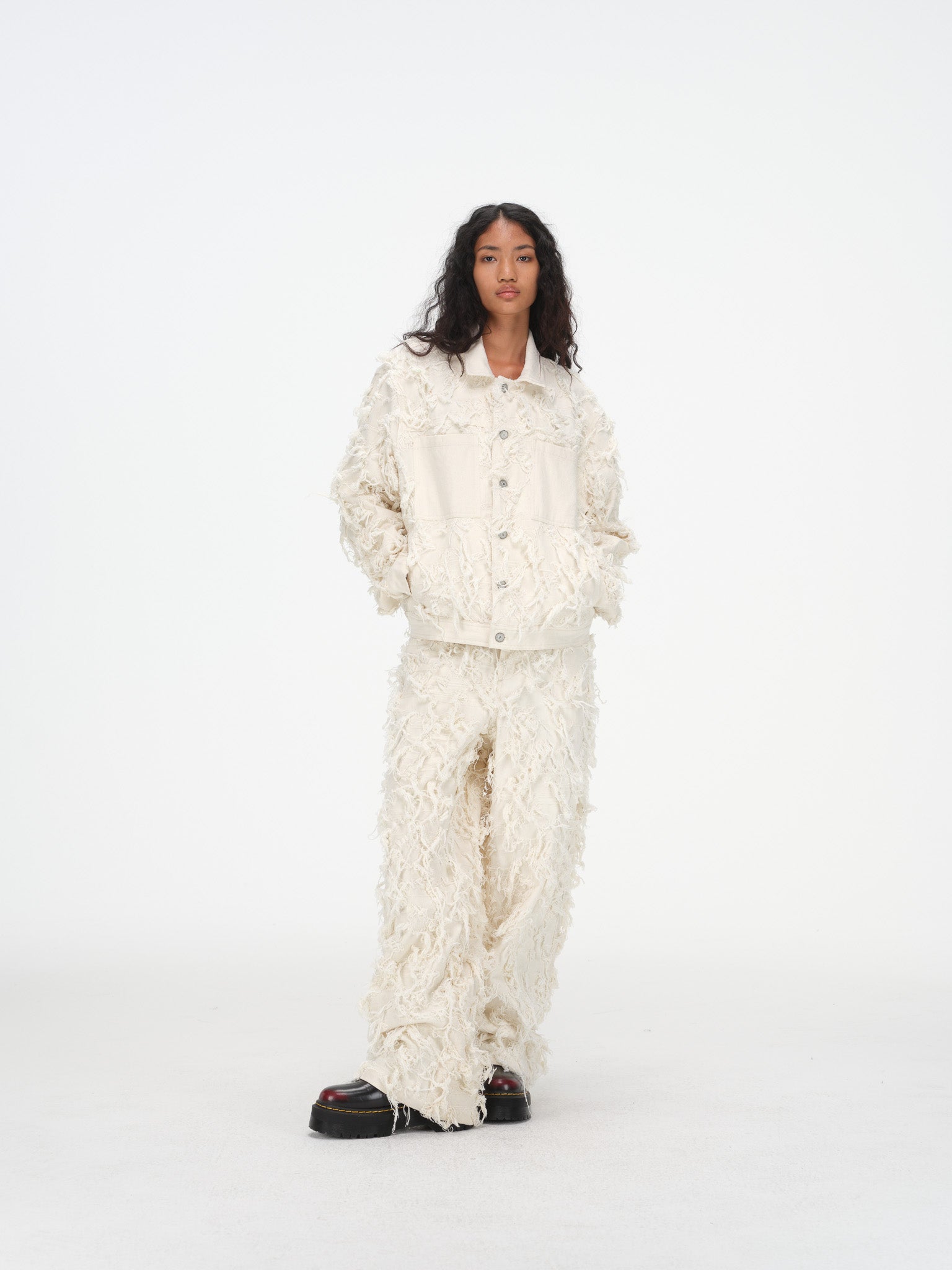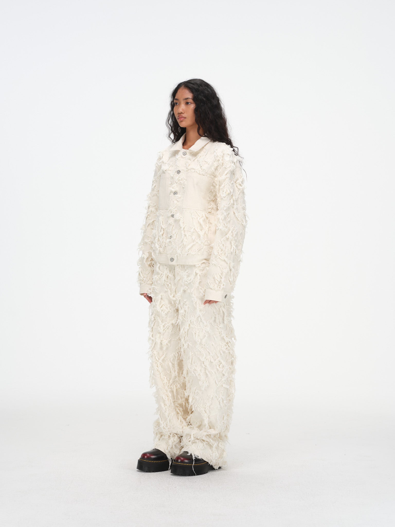 Can be paired with the Distressed Fringe Denim Pants - Cream