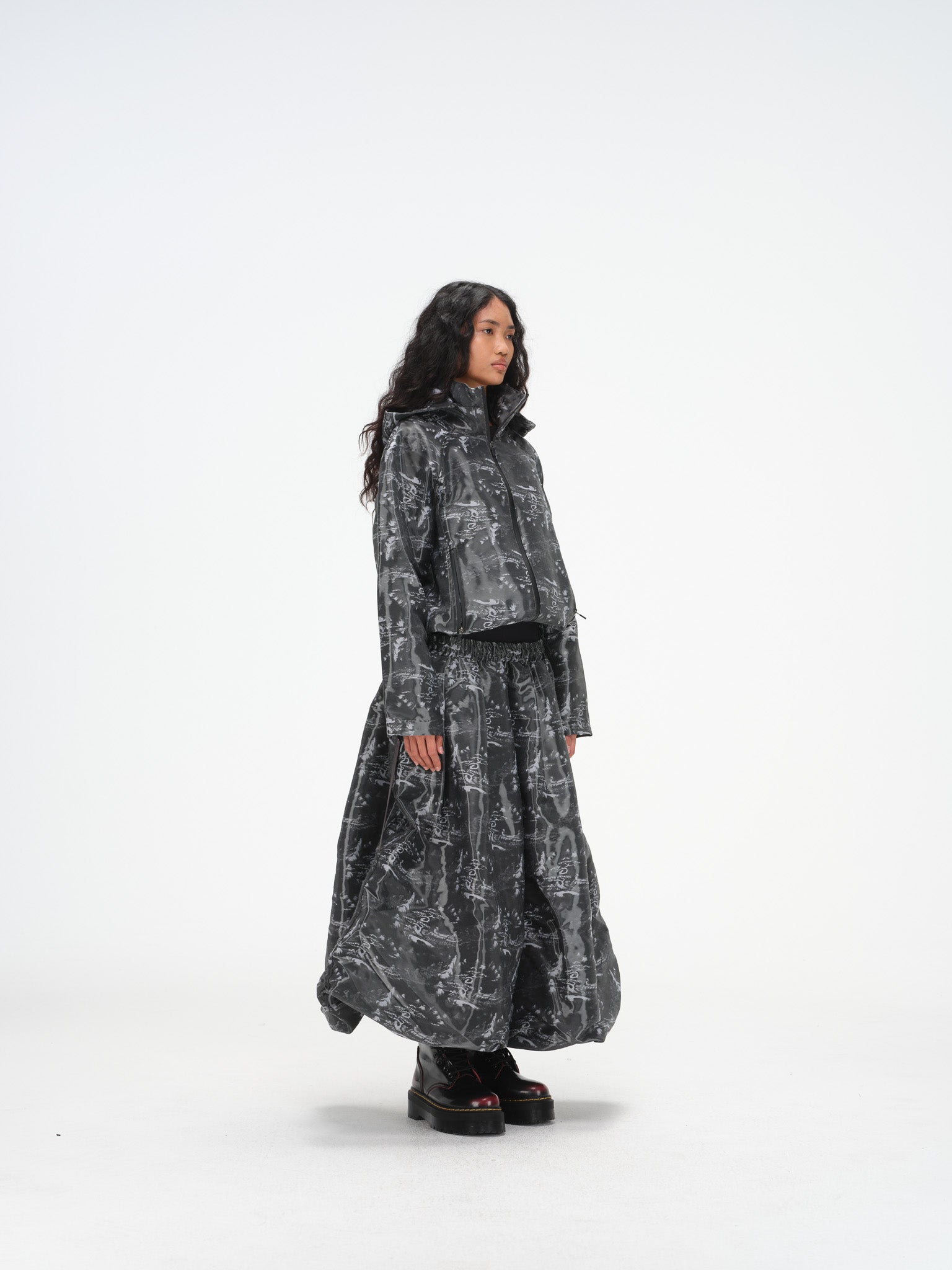 Can be paired with the Constructed Bubble Skirt - Glossy Ink Wash