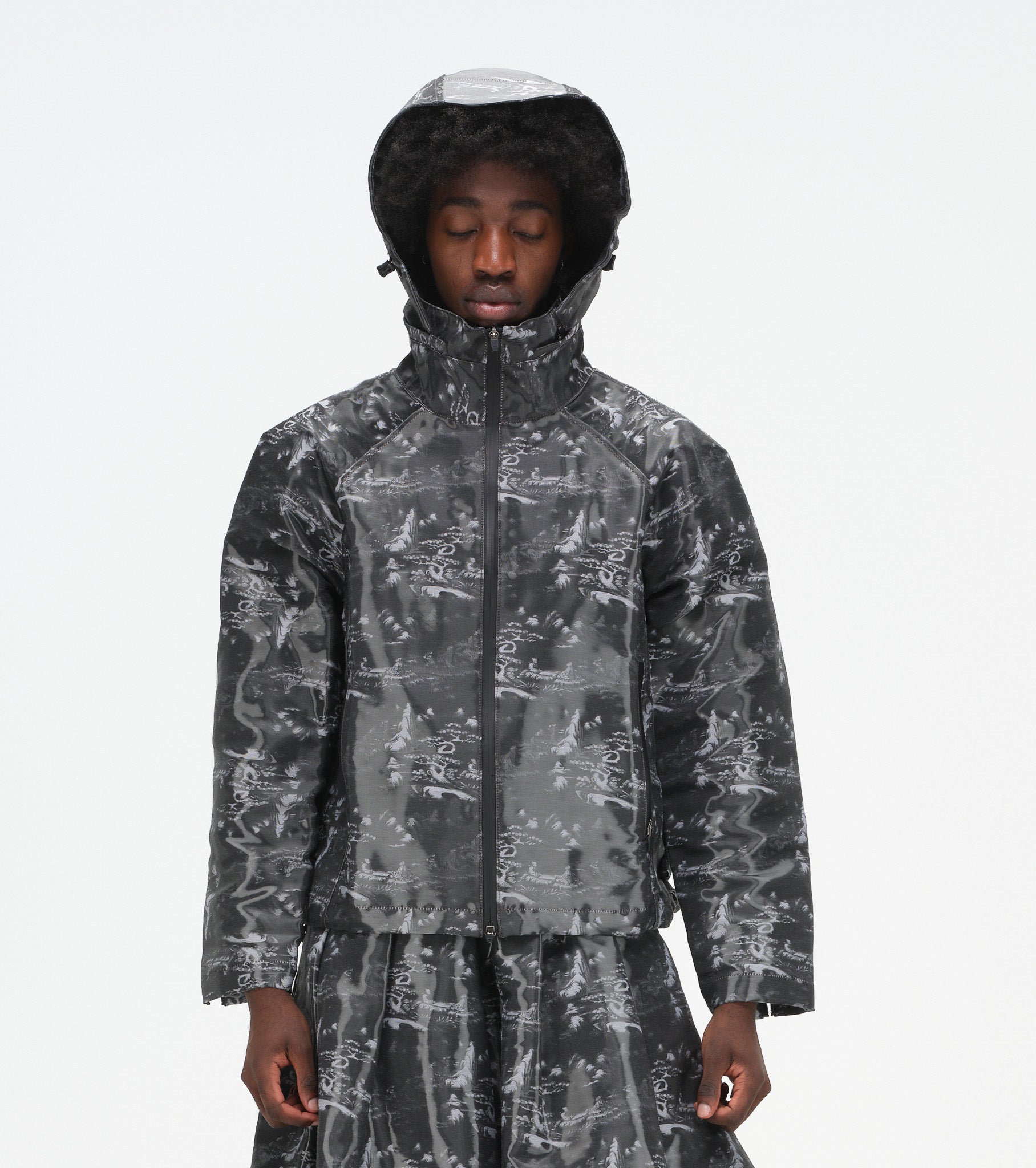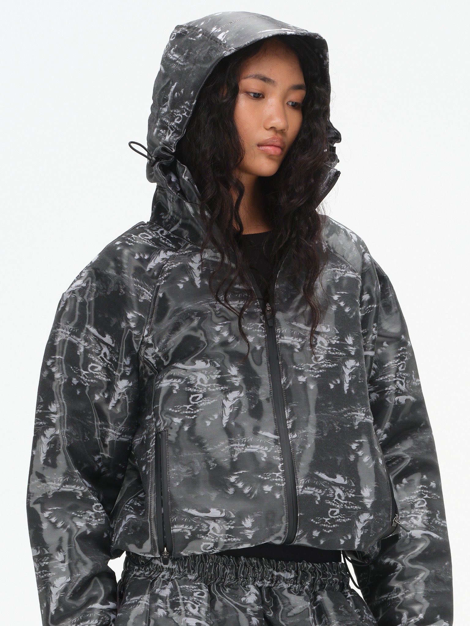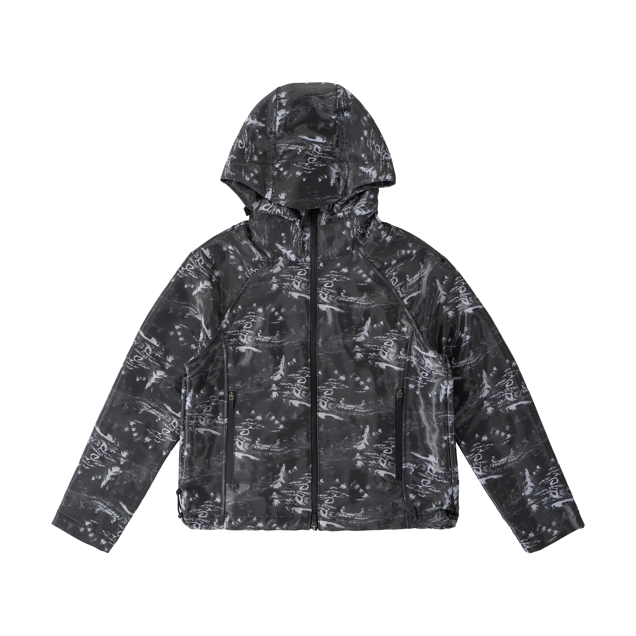 Technical hooded jacket with tonal ink wash print