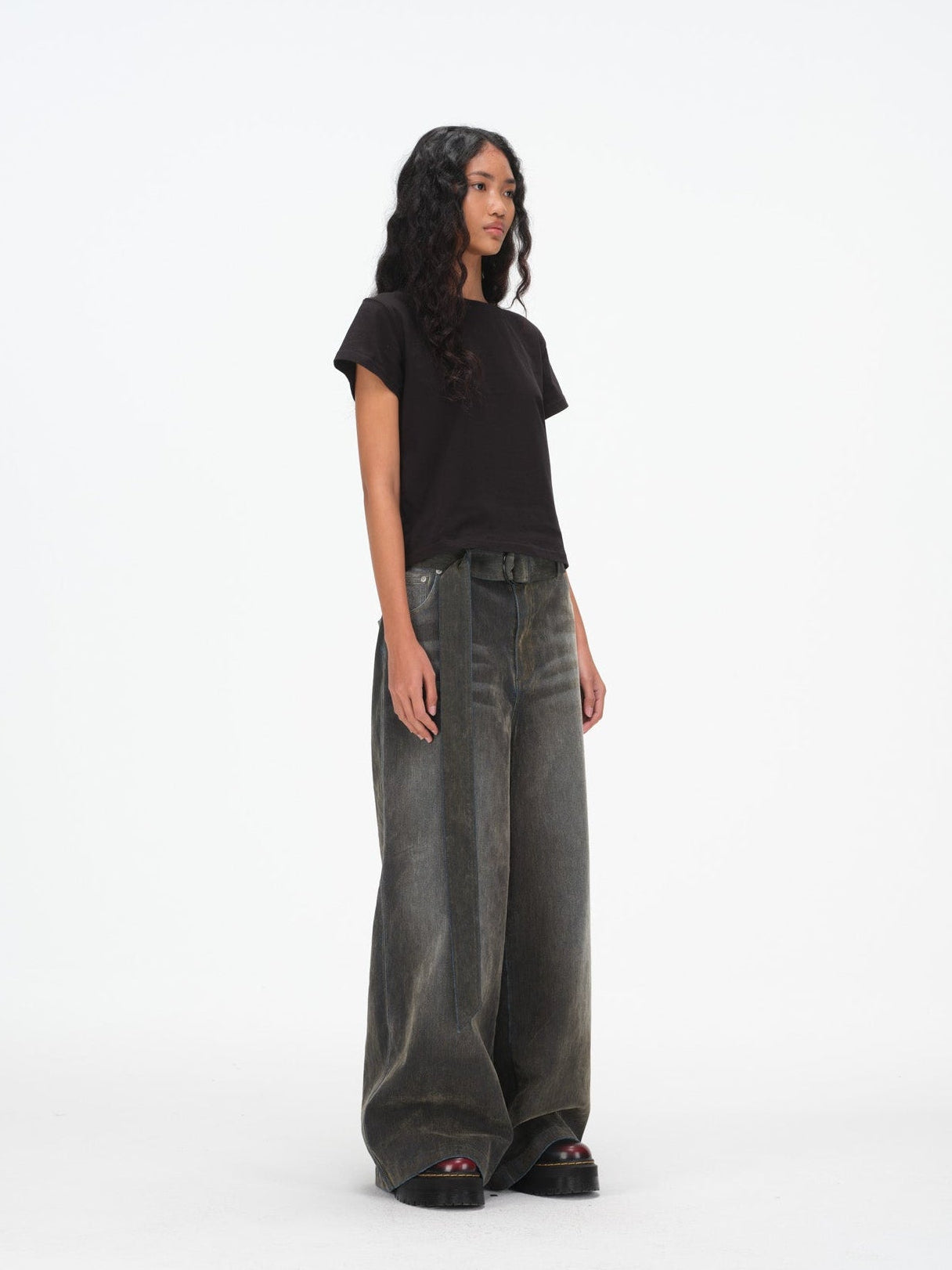 Medium high-rise waist with relaxed, wide leg silhouette