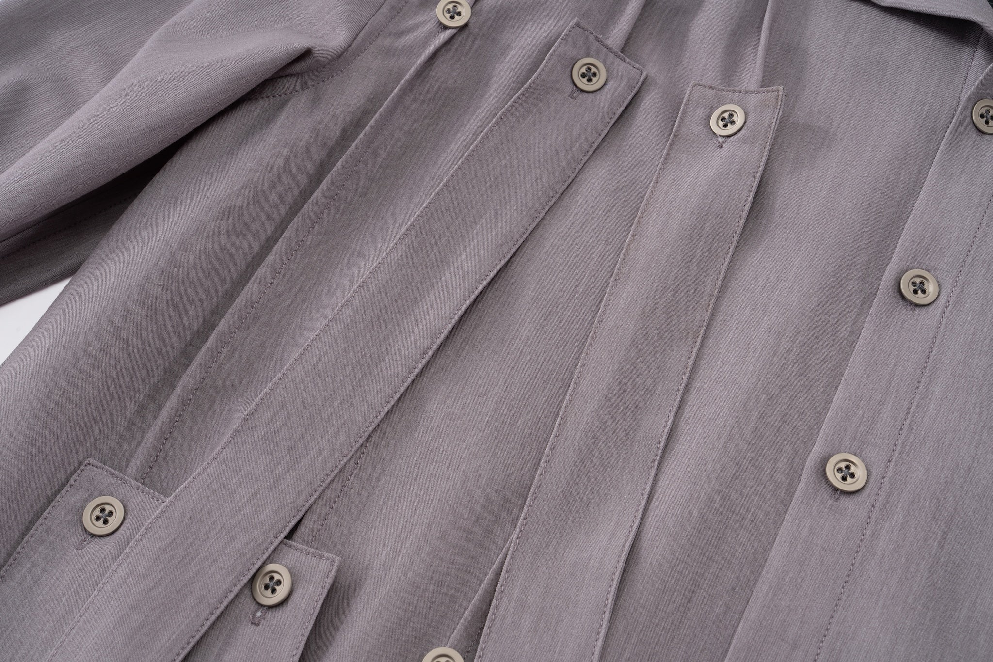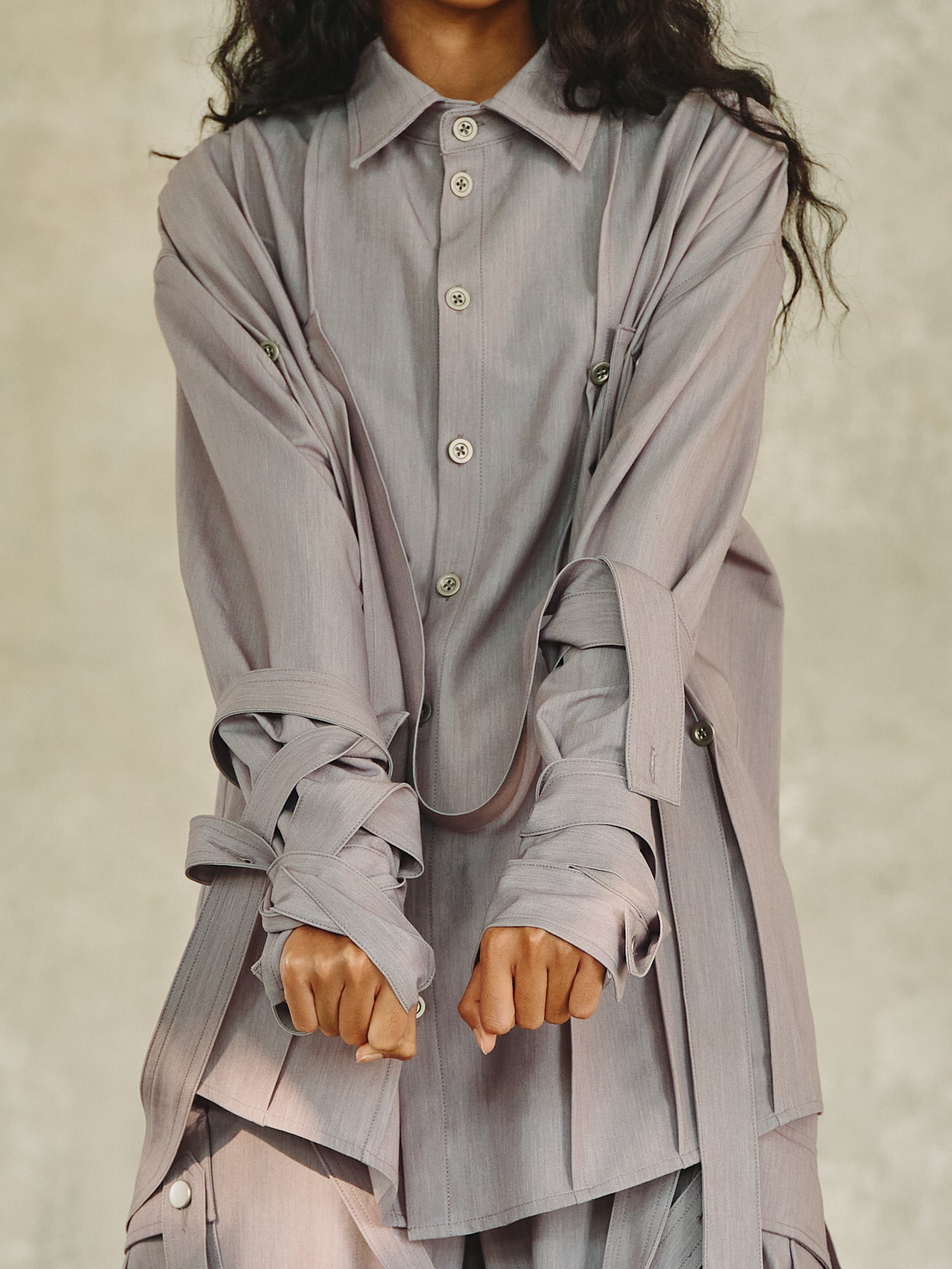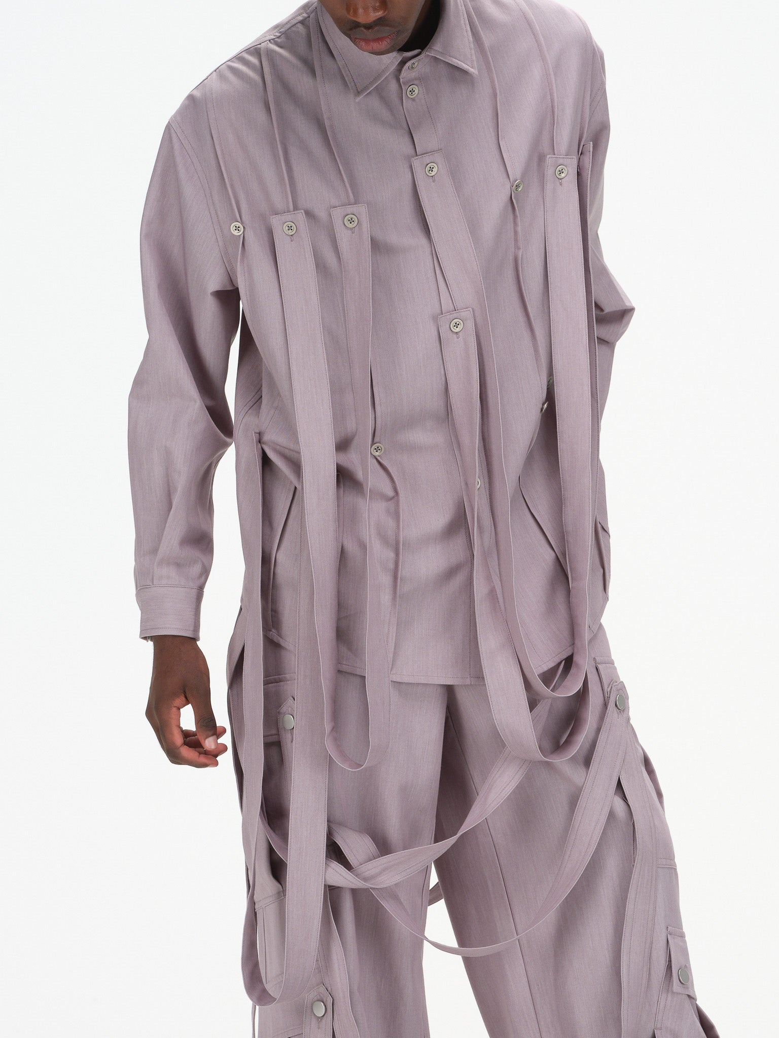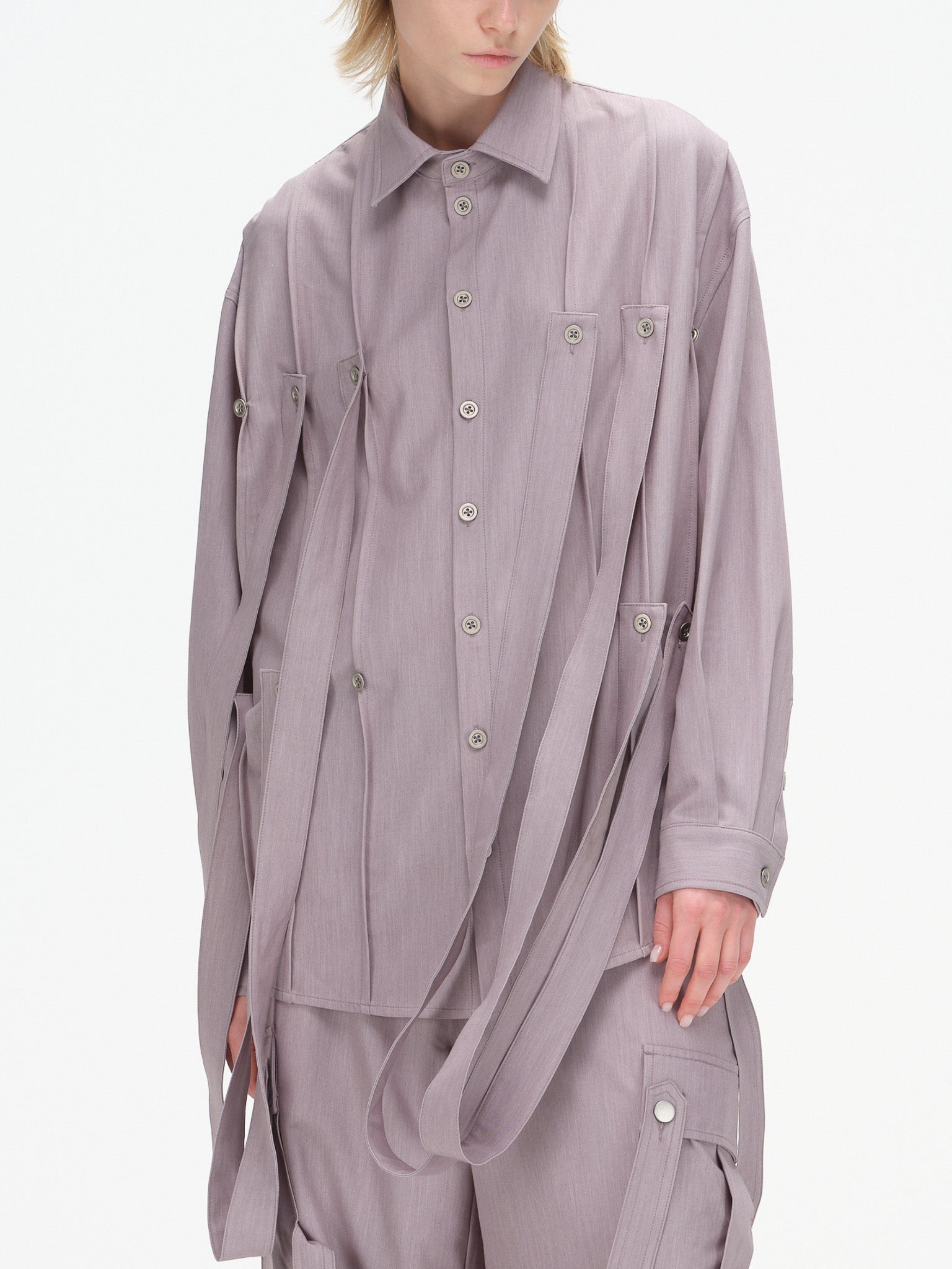 Styleable Strap Long Sleeve Button Up - Lavender Grey