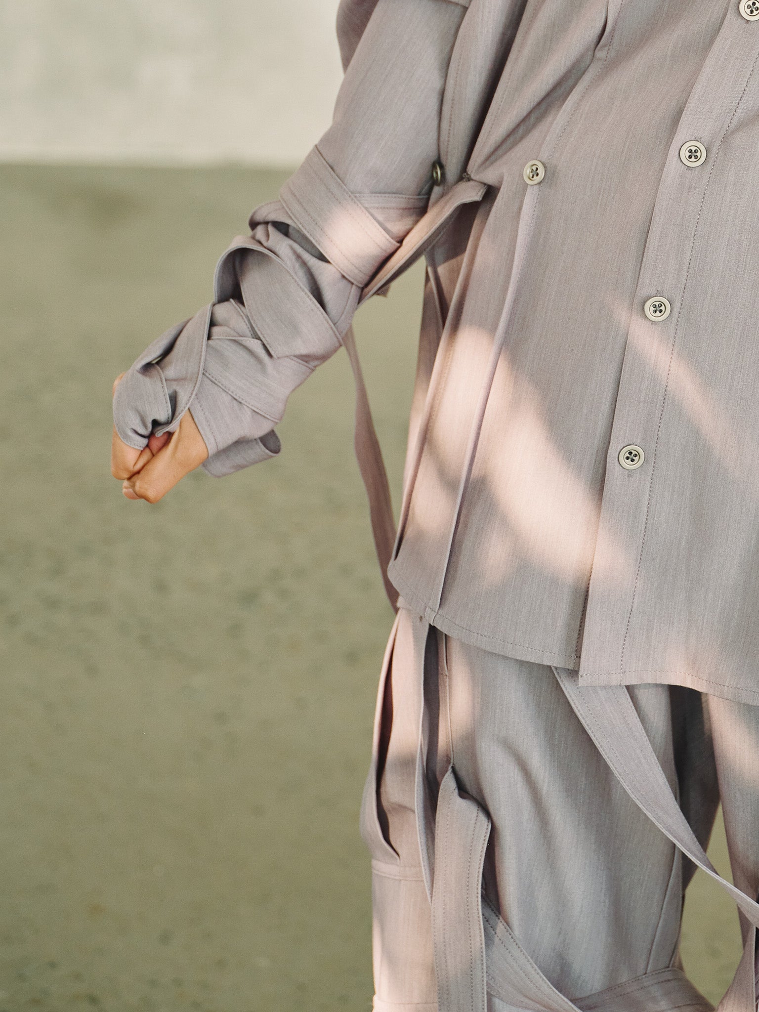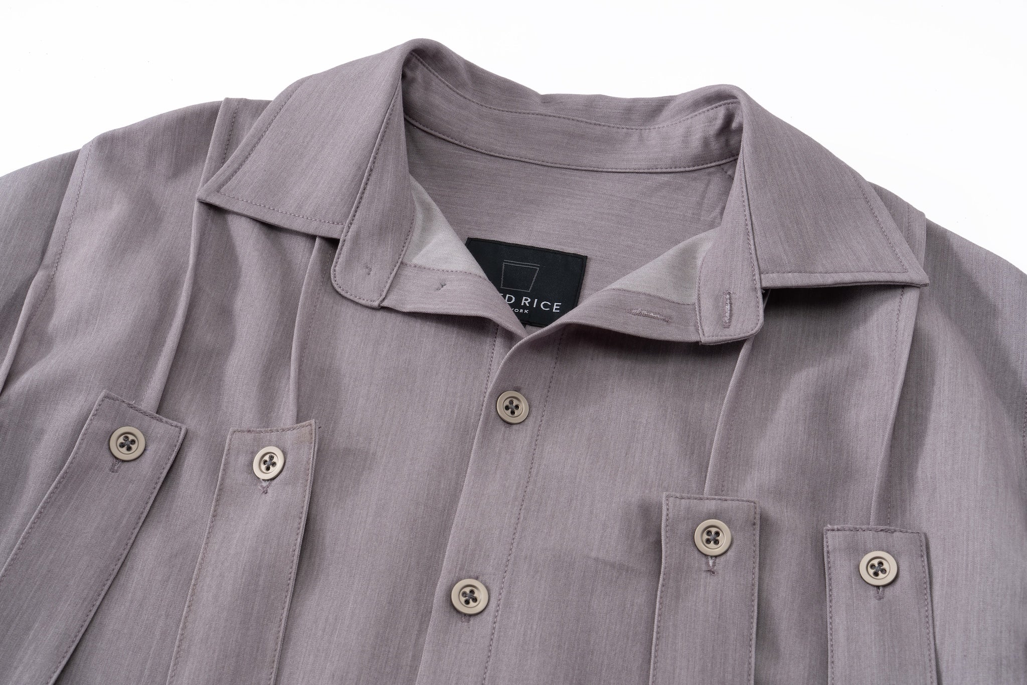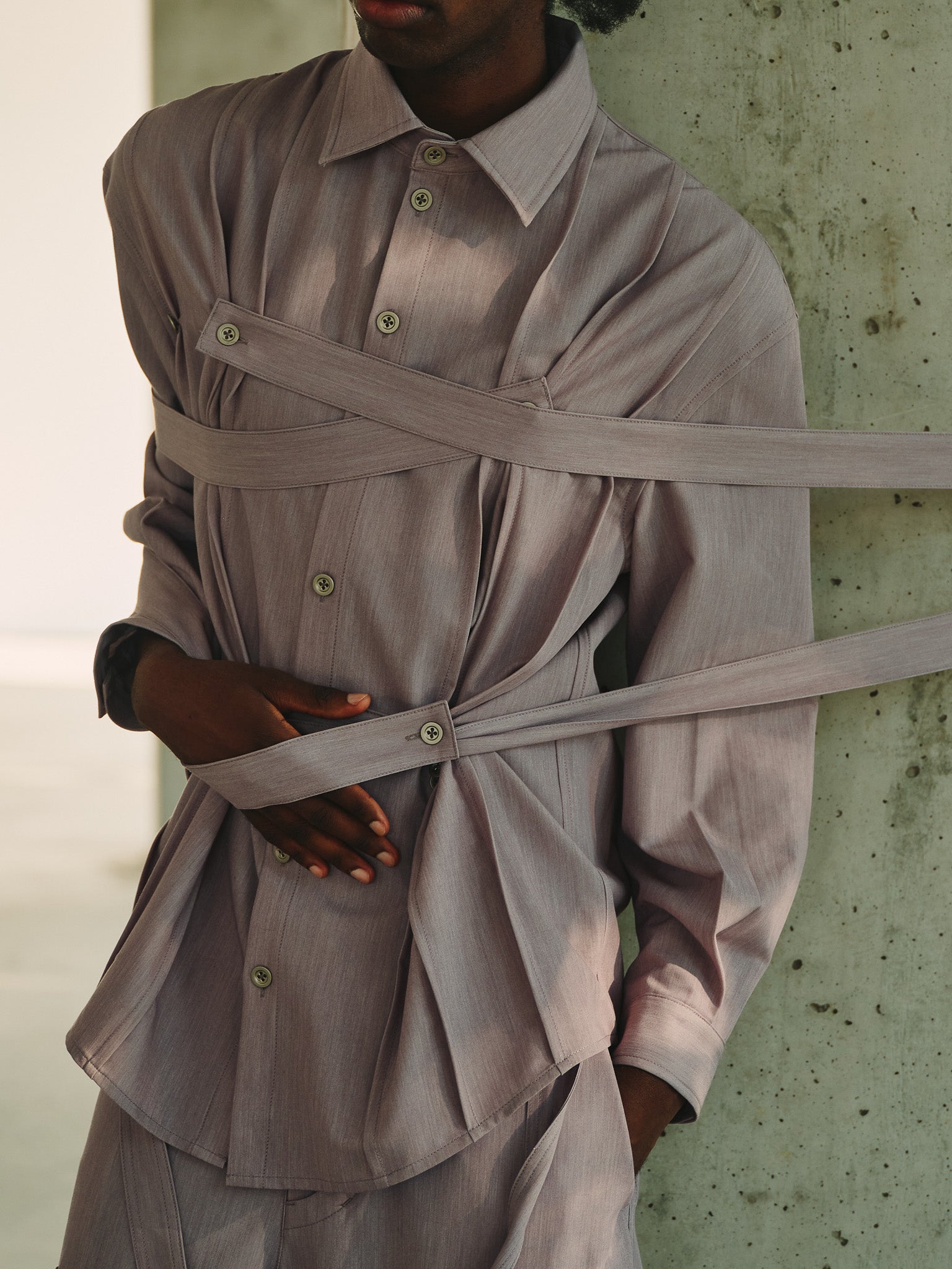 Styleable Strap Long Sleeve Button Up - Lavender Grey
