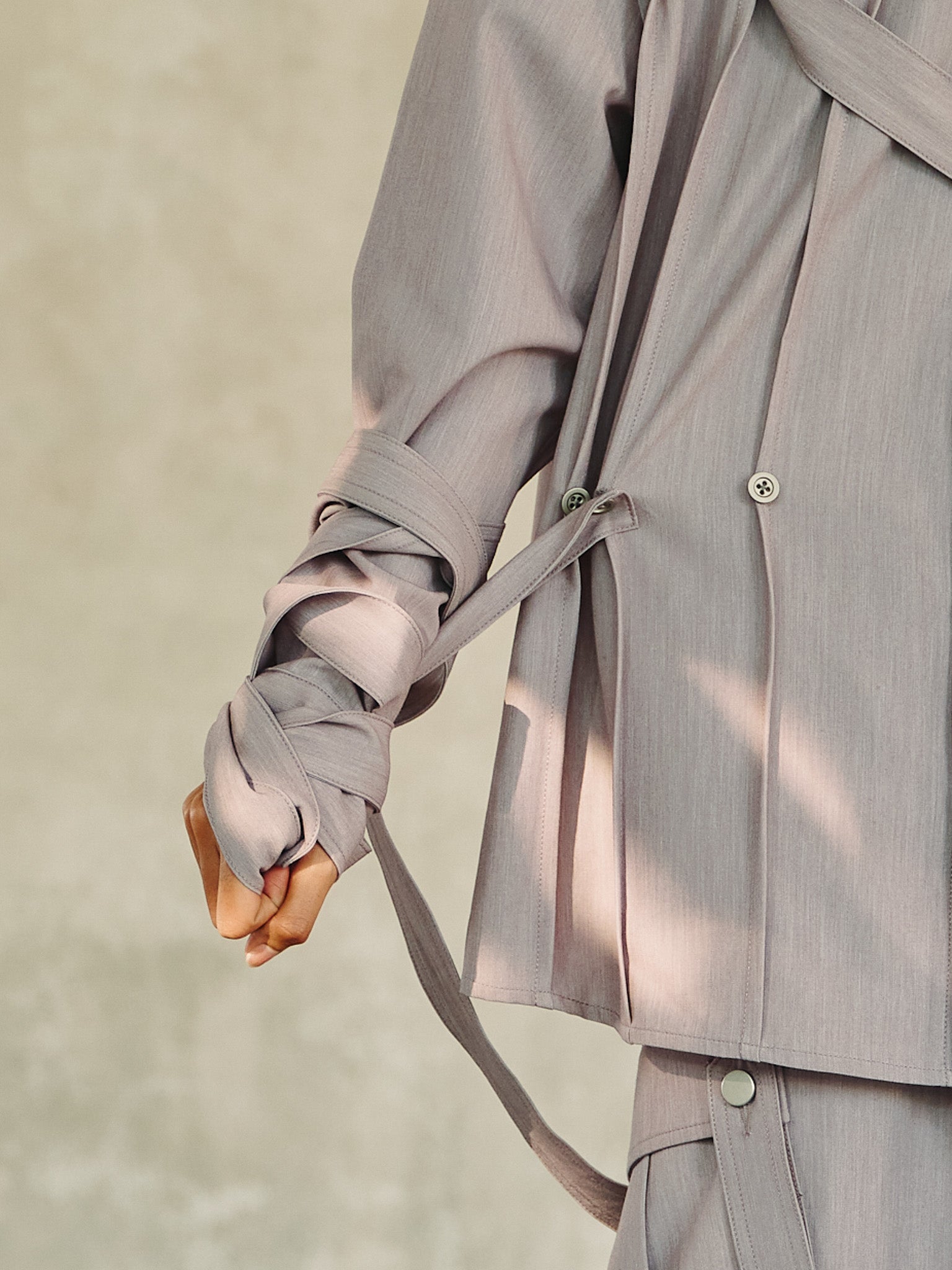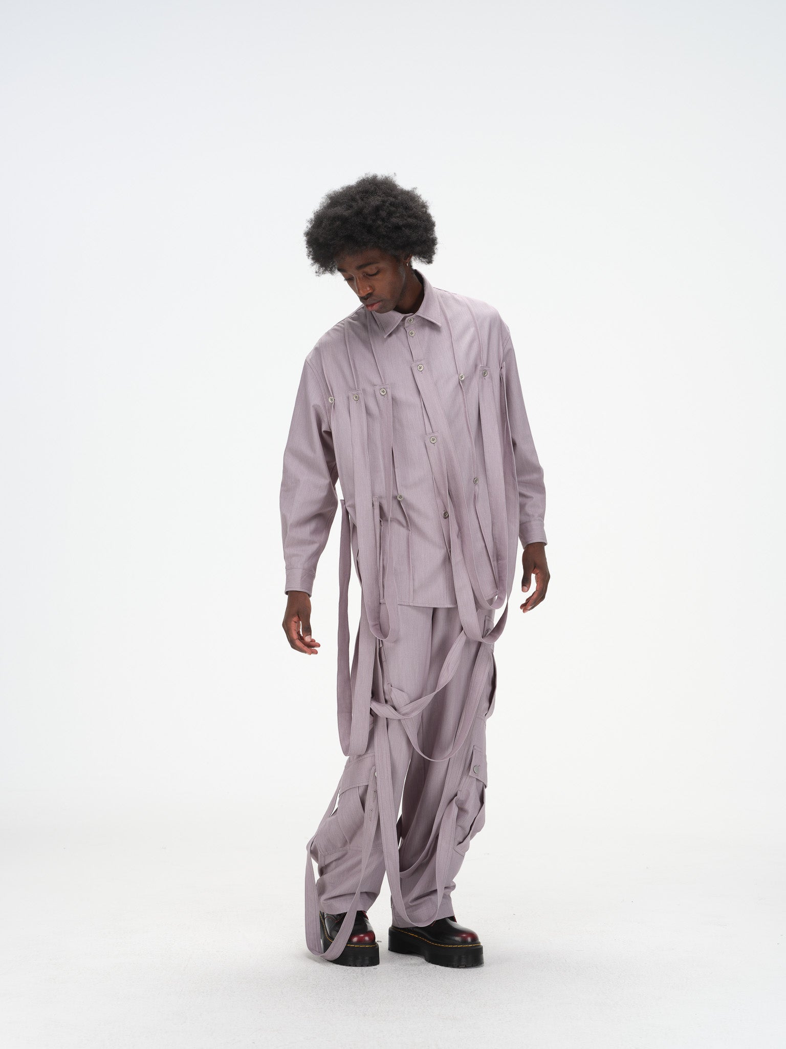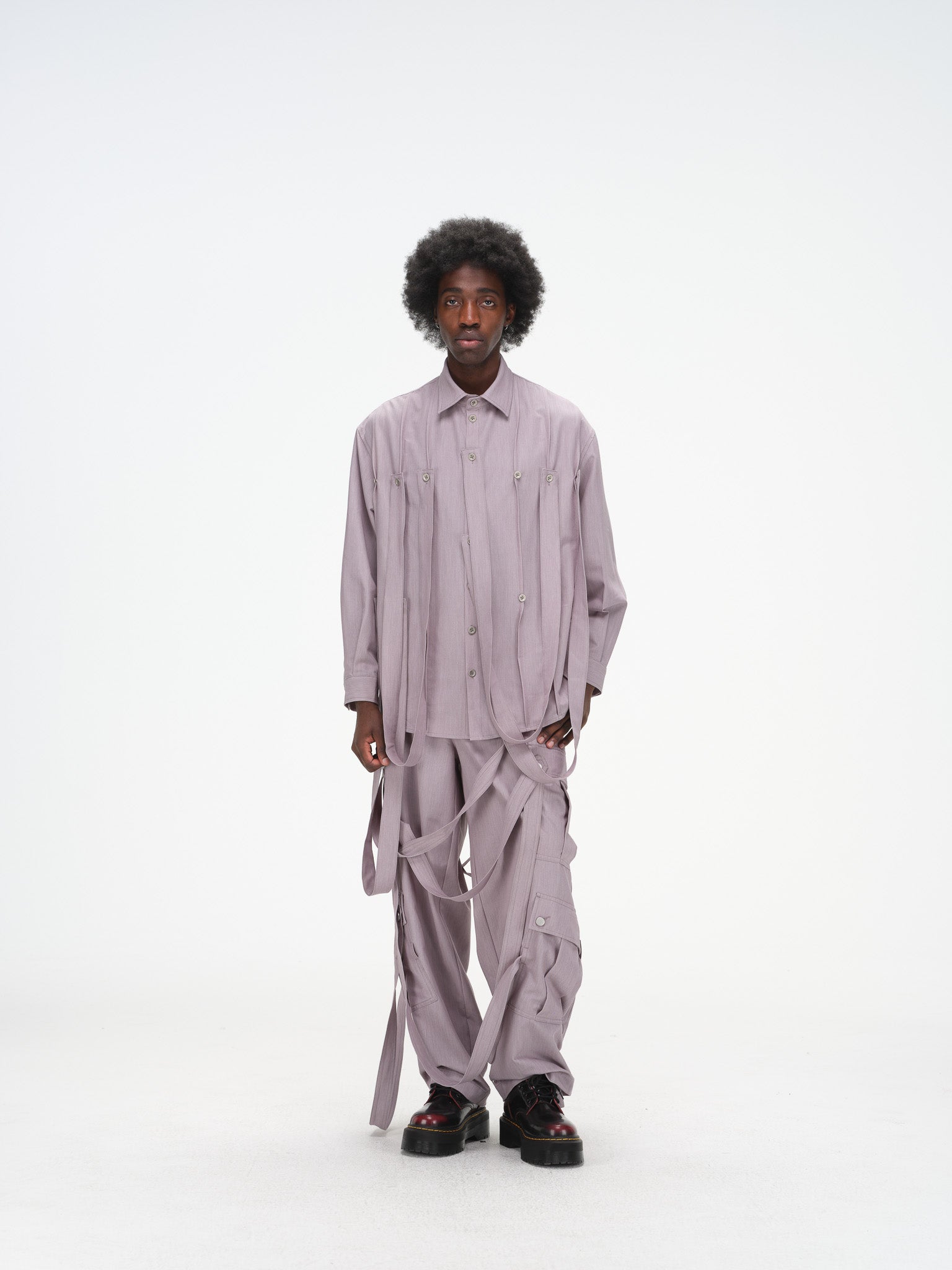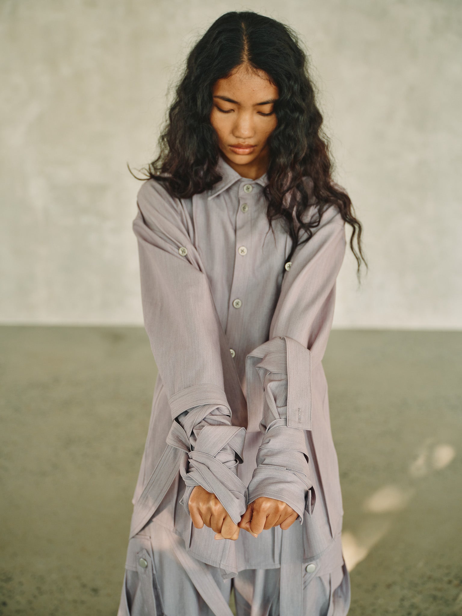 Styleable Strap Long Sleeve Button Up - Lavender Grey