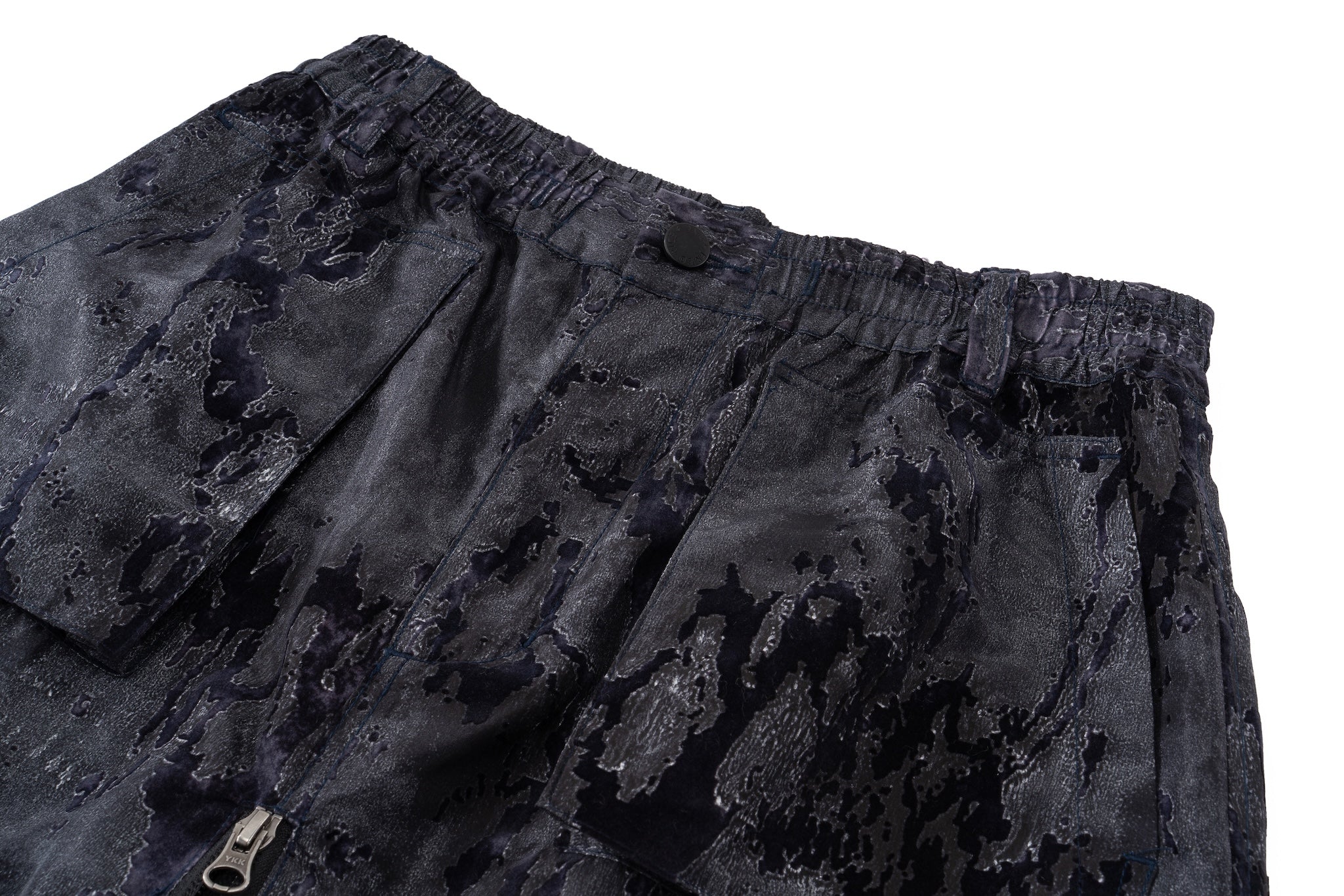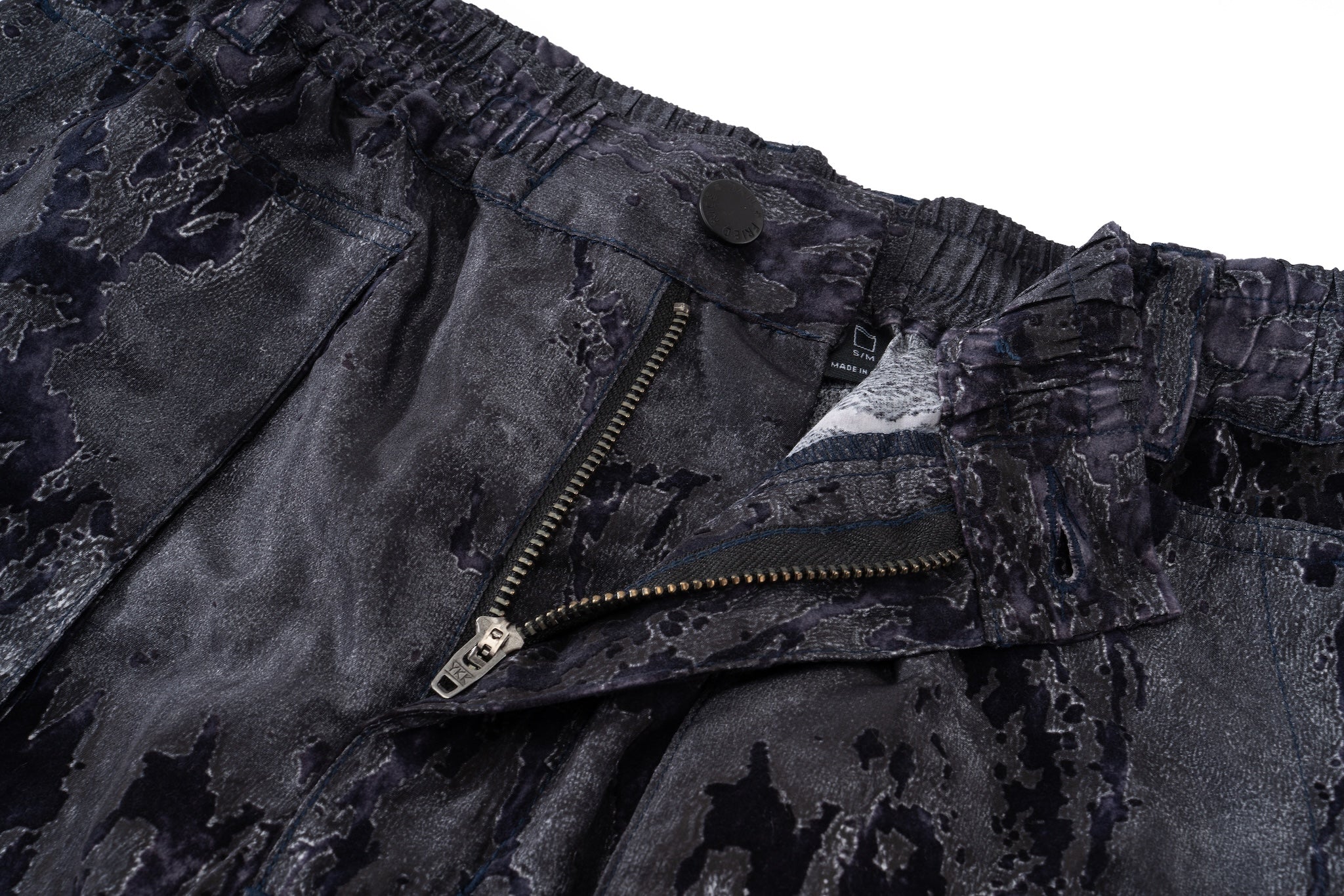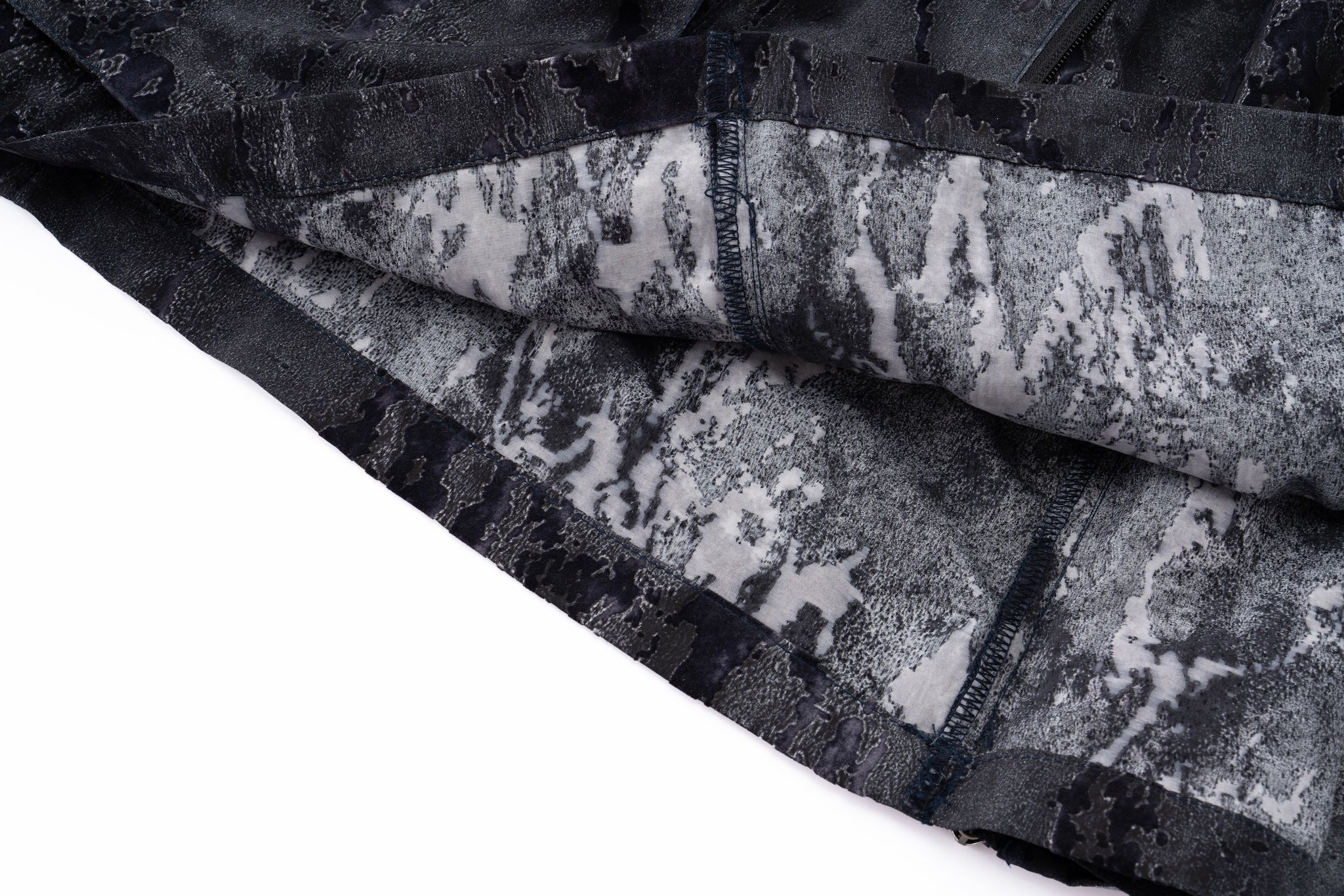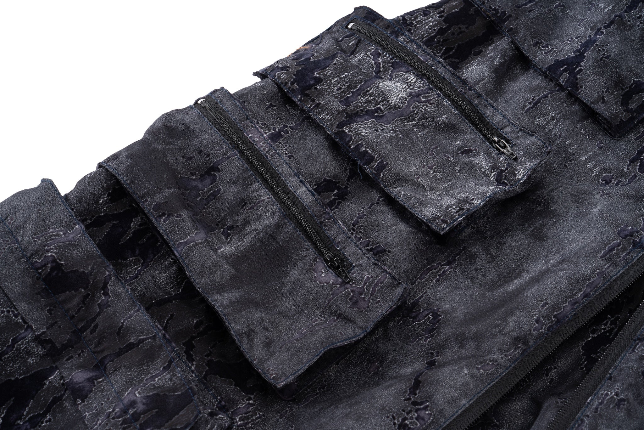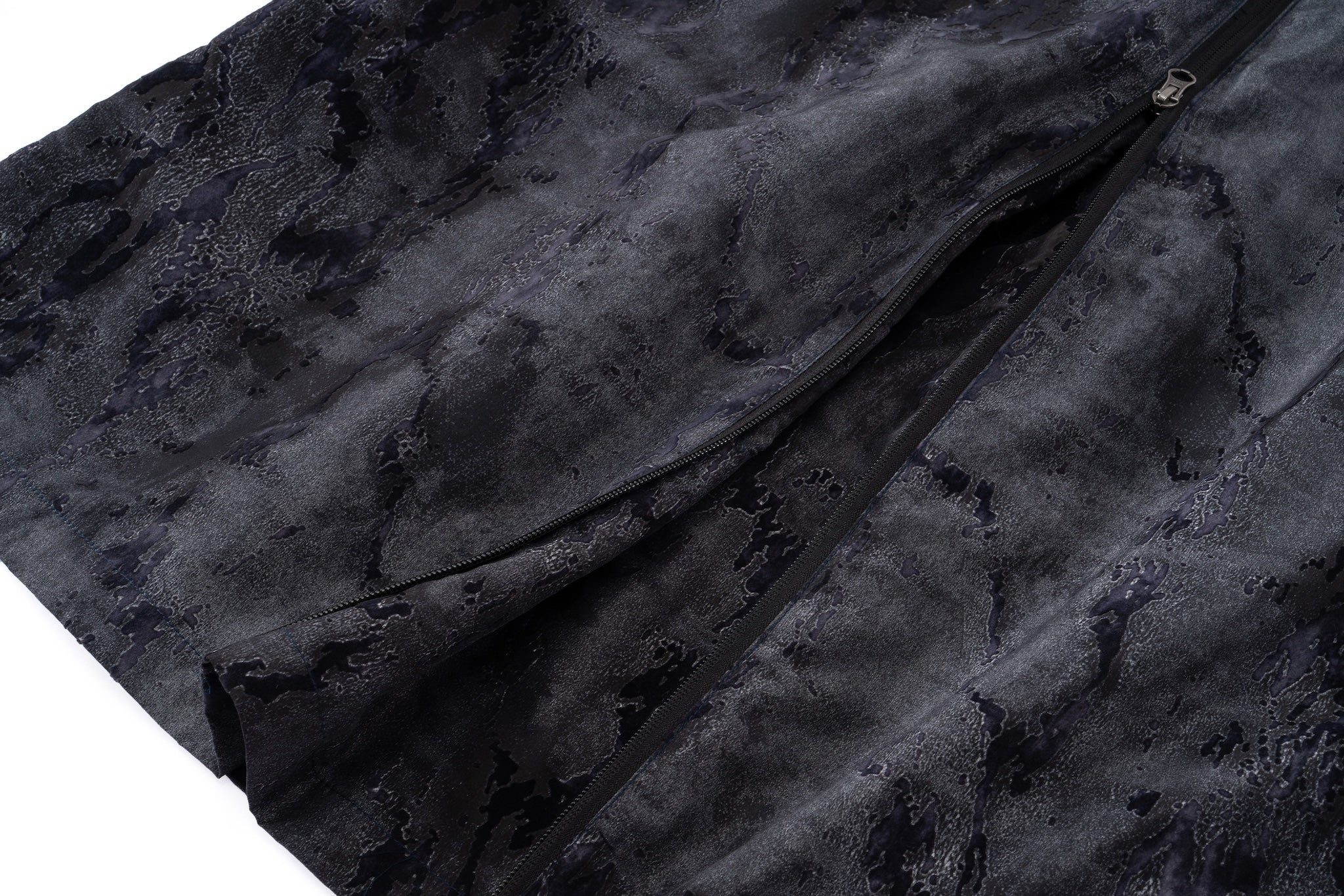 Midi-length cargo skirt in an abstract blue black textured jacquard fabric
