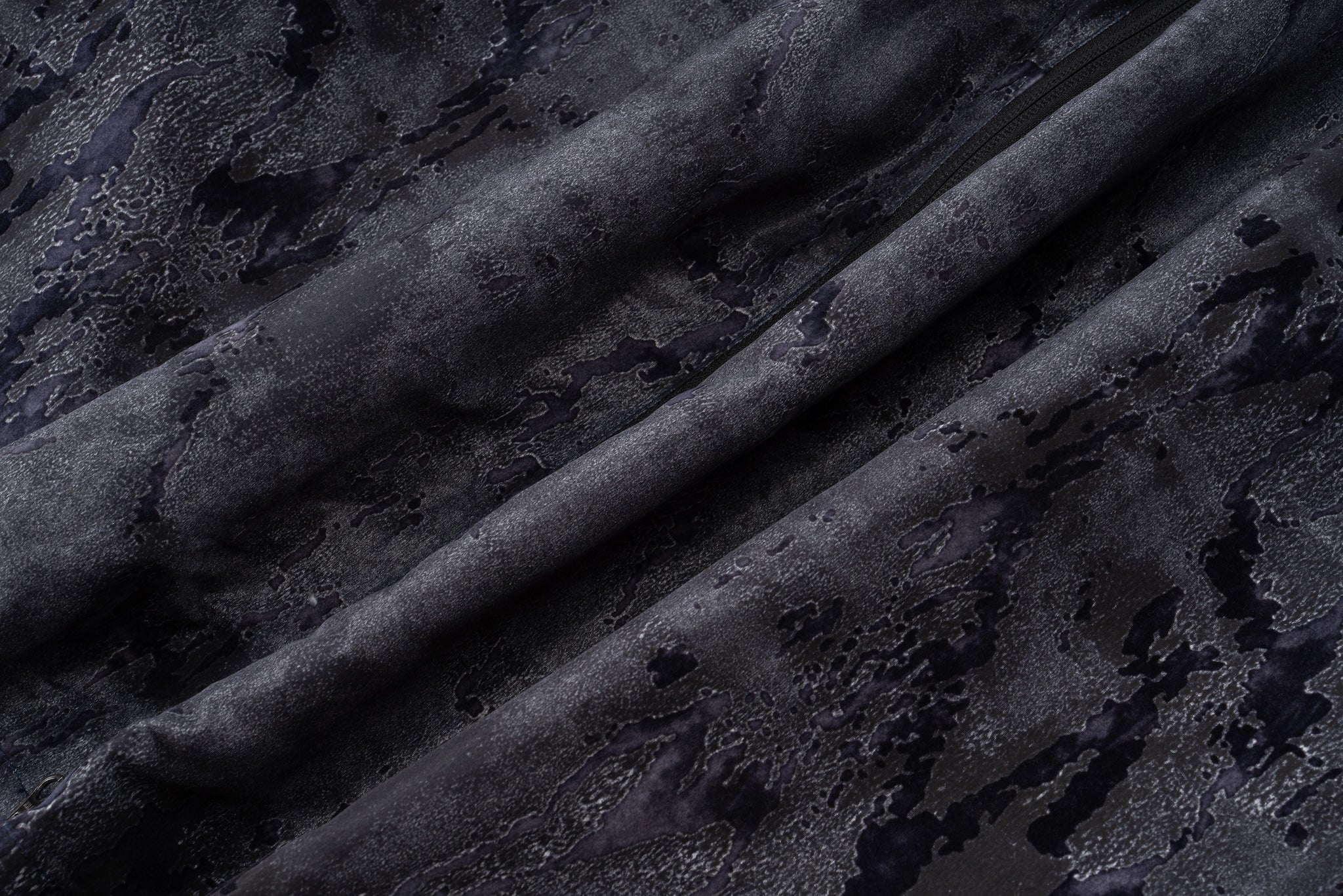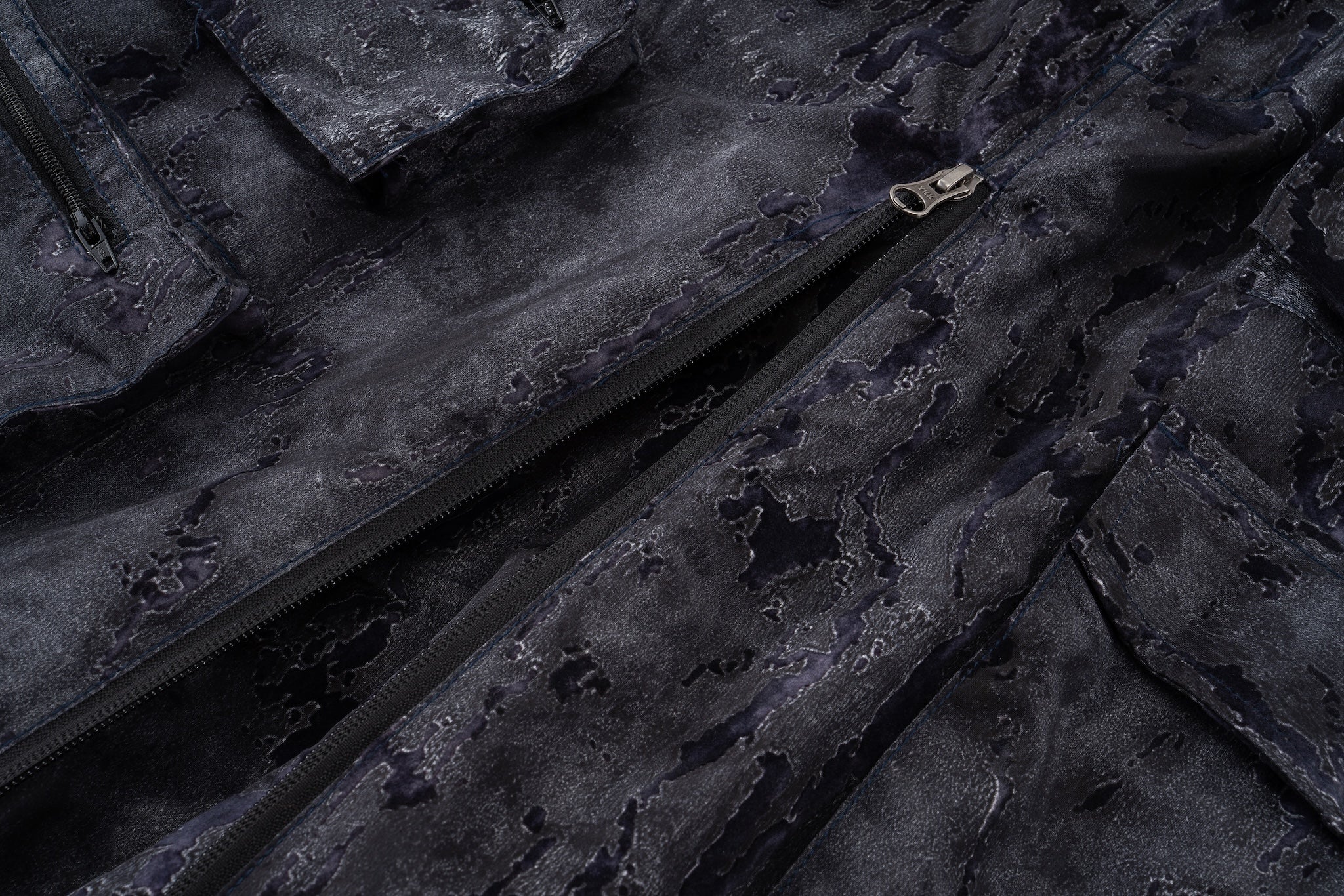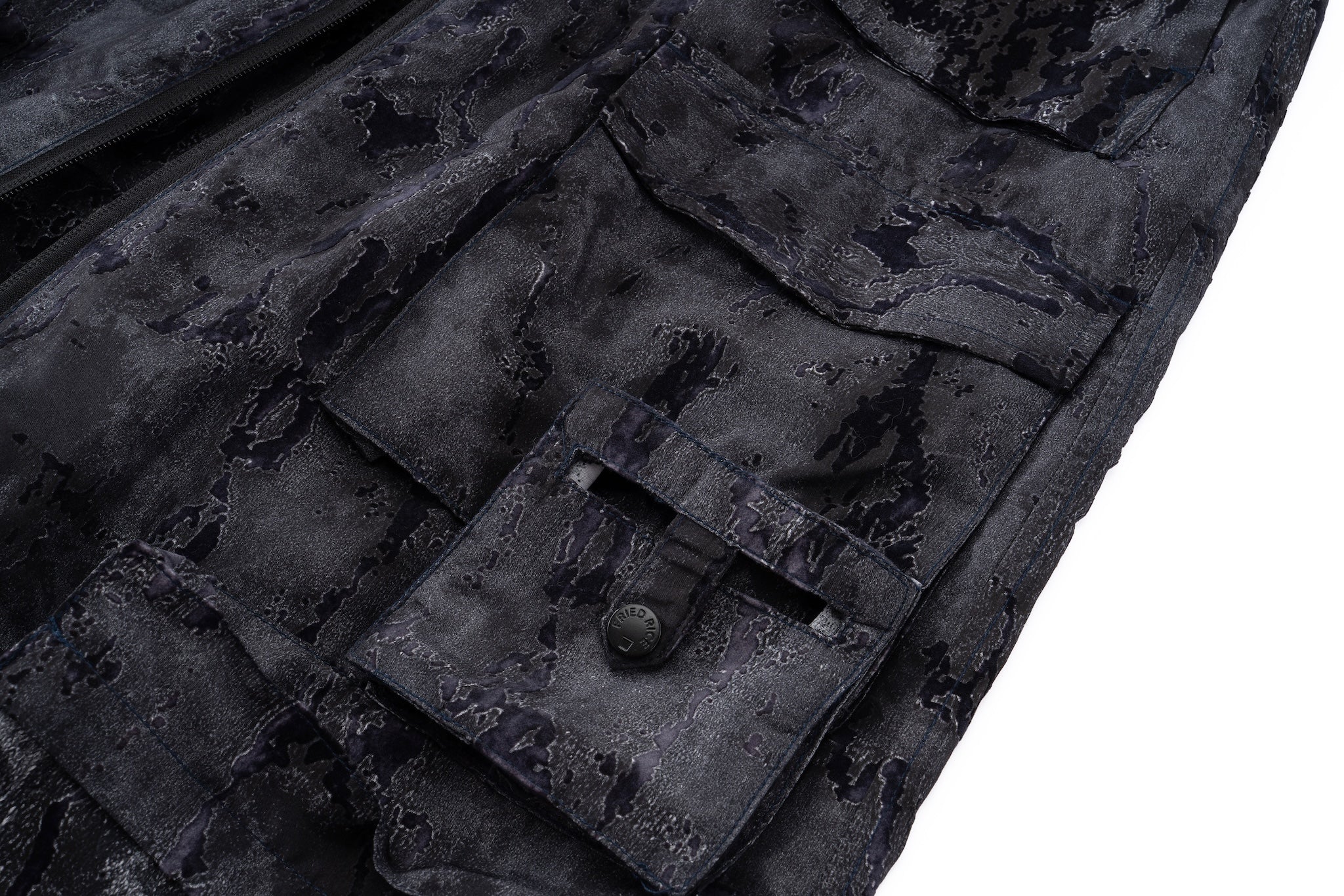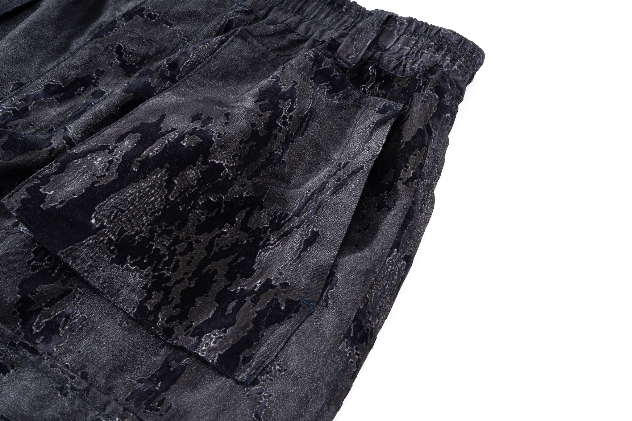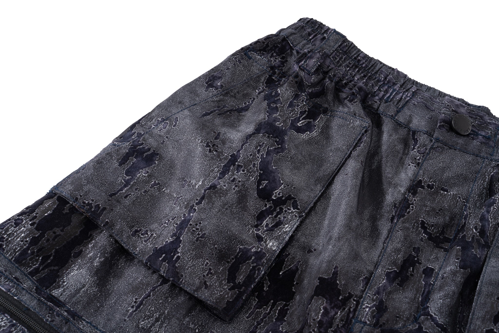 Midi-length cargo skirt in an abstract blue black textured jacquard fabric