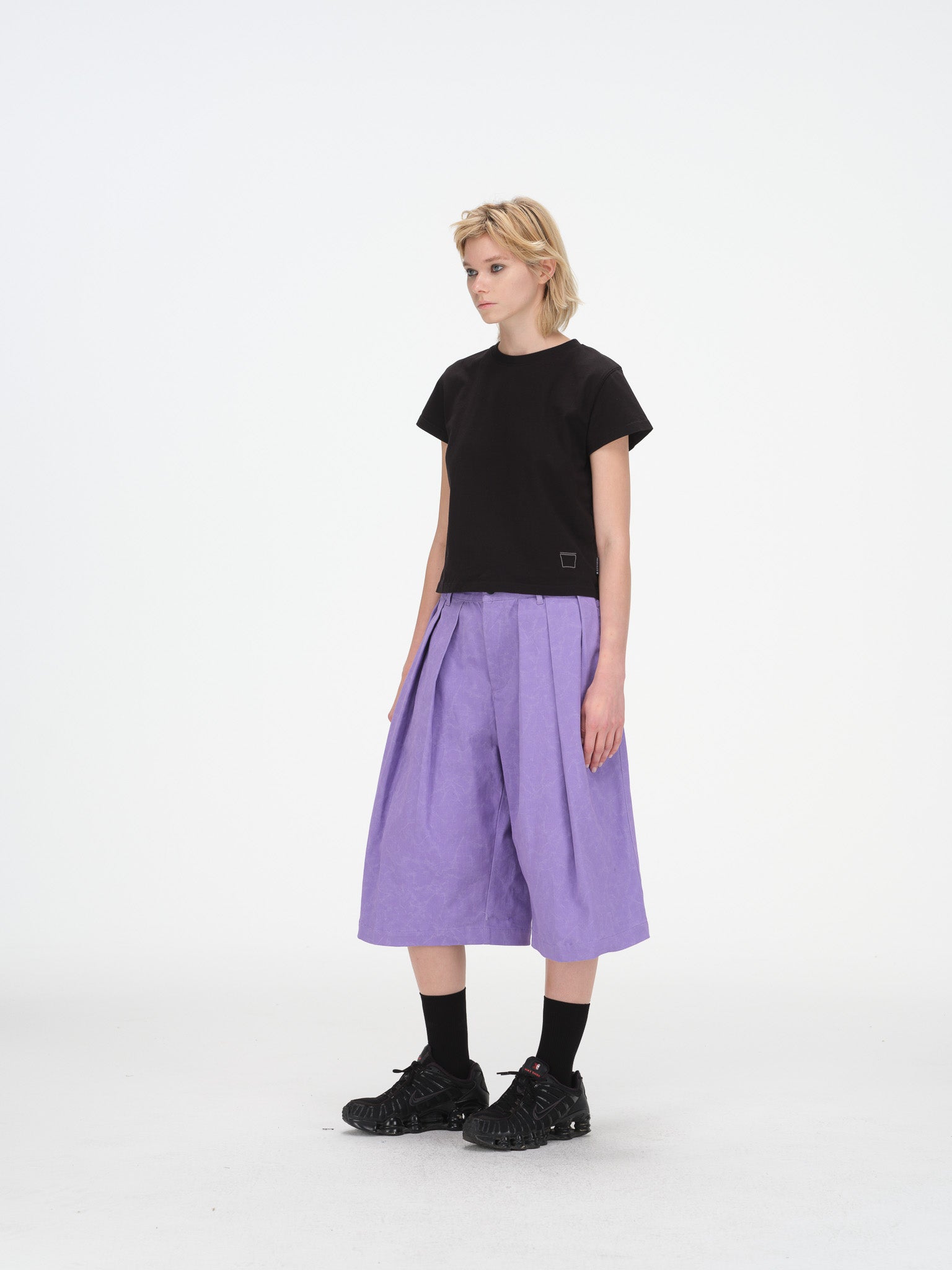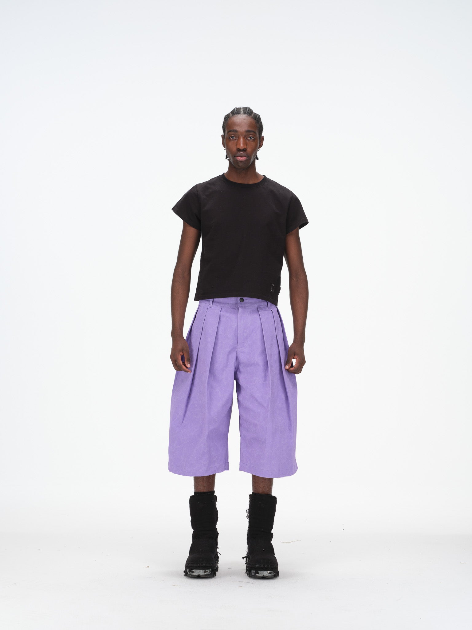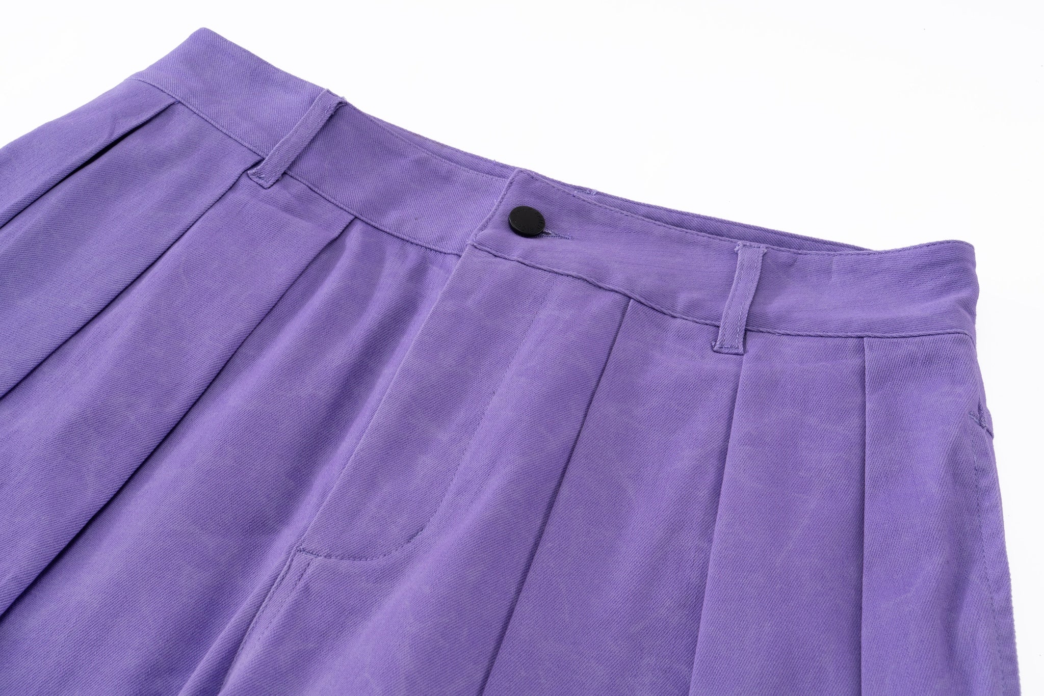 Wide-leg tailored shorts in a washed purple fabric