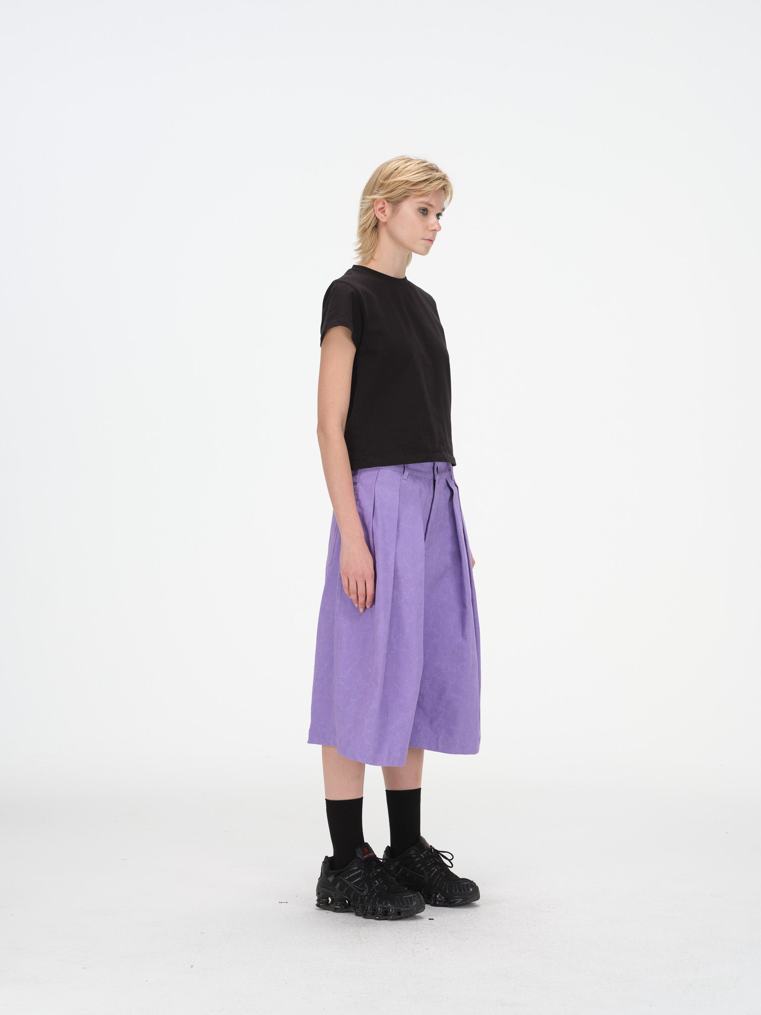 Wide-Leg Pleated Shorts - Purple